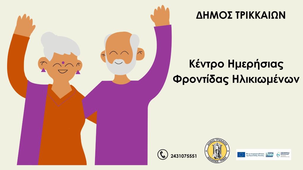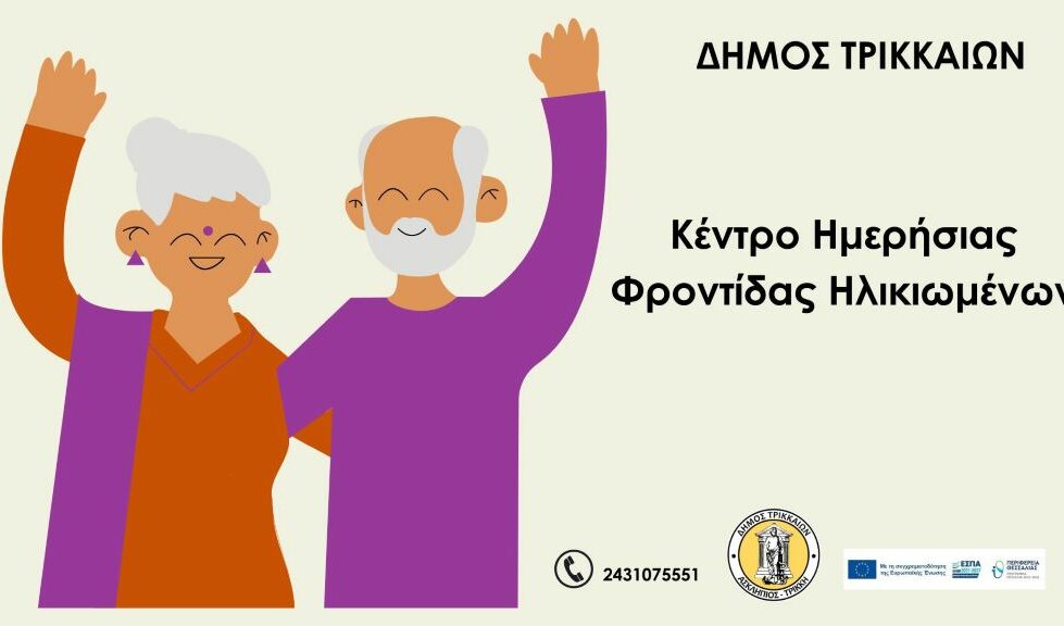 Αιτήσεις για την ένταξη ωφελούμενων στο Κέντρο Ημερήσιας Φροντίδας Ηλικιωμένων δέχεται ο Δήμος Τρικκαίων.
