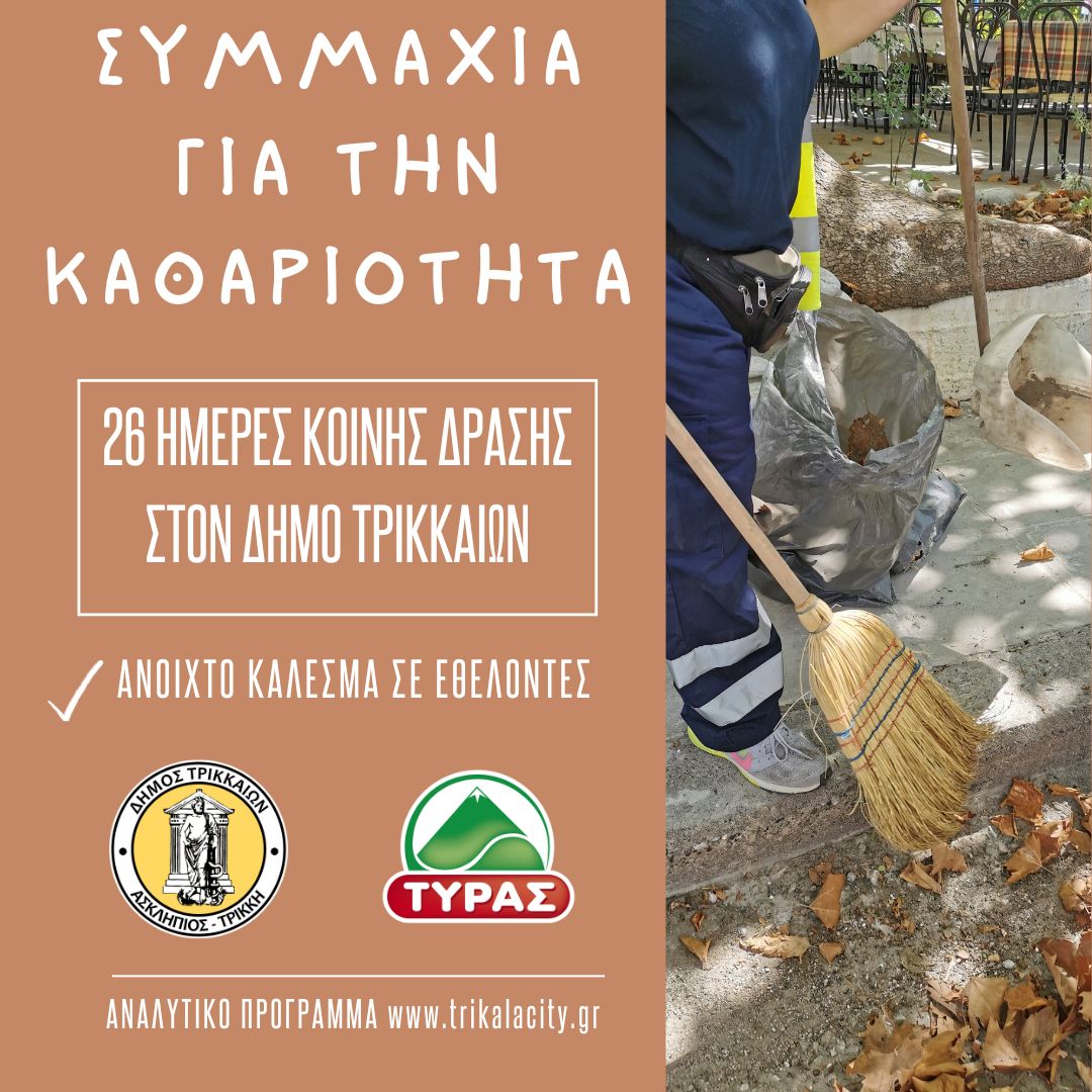 Με μια συντονισμένη προσπάθεια, καρπός συνεργασίας για καθαρότερη πόλη, ο Δήμος Τρικκαίων και η ΤΥΡΑΣ ξεκίνησαν 26ήμερο πρόγραμμα καθαρισμού σε γειτονιές, συνοικίες και οικισμούς.