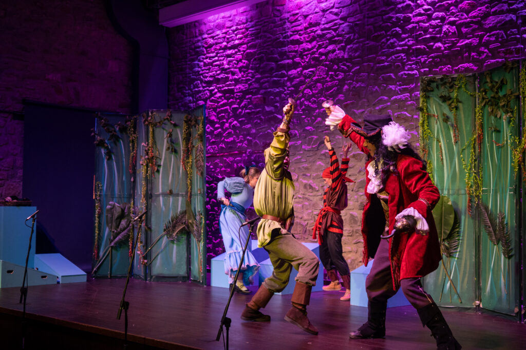 Η παράσταση ξετυλίγεται μπροστά στα μάτια των παιδιών, μέσω ενός εφευρετικού παιχνιδιού, καθώς η Χώρα του Ποτέ είναι μια παιδική χαρά περιπέτειας. Εκεί, όπου τα Χαμένα Παιδιά ζουν σήμερα με αντικείμενα που βρίσκονται γύρω τους.