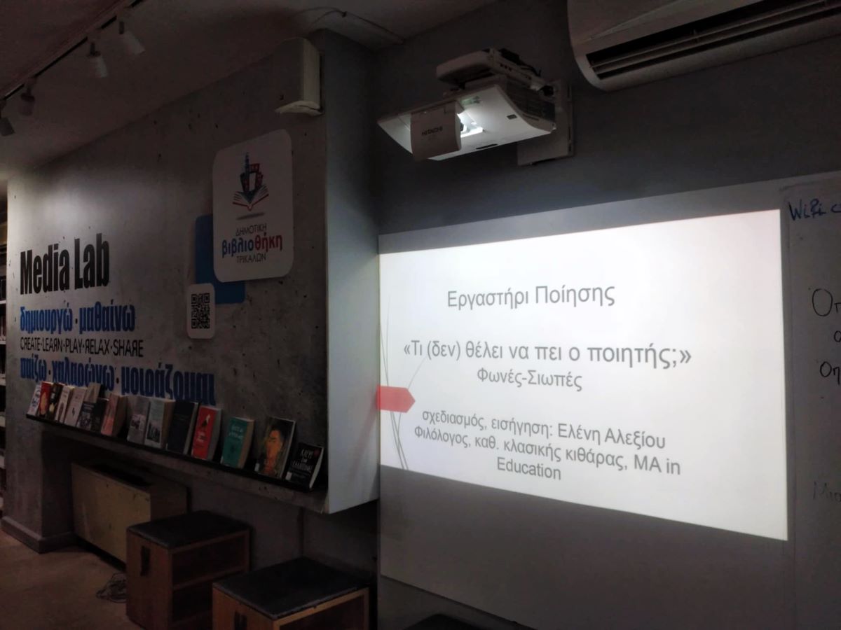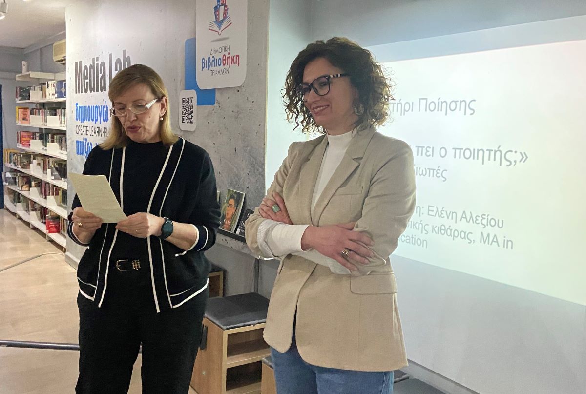 «Τι (δεν) θέλει να πει ο ποιητής;». Το ερώτημα τέθηκε το απόγευμα της Τρίτης 18 Μαρτίου στη Δημοτική Βιβλιοθήκη Τρικάλων, σε εργαστήρι που διοργανώθηκε εν όψει της Παγκόσμιας Ημέρας Ποίησης. Η εκπαιδευτικός και ποιήτρια κ. Ελένη Αλεξίου οργάνωσε την εκδήλωση, με τη συνεργασία της Λέσχης Ανάγνωσης. Τα θέματα που απασχόλησαν τη συζήτηση, αφορούσαν στον διάλογο, στη φωνή, στη σιωπή, στον λόγο στη συζήτηση με τον εαυτό μας, με τα λόγια και τις σκέψεις μας.