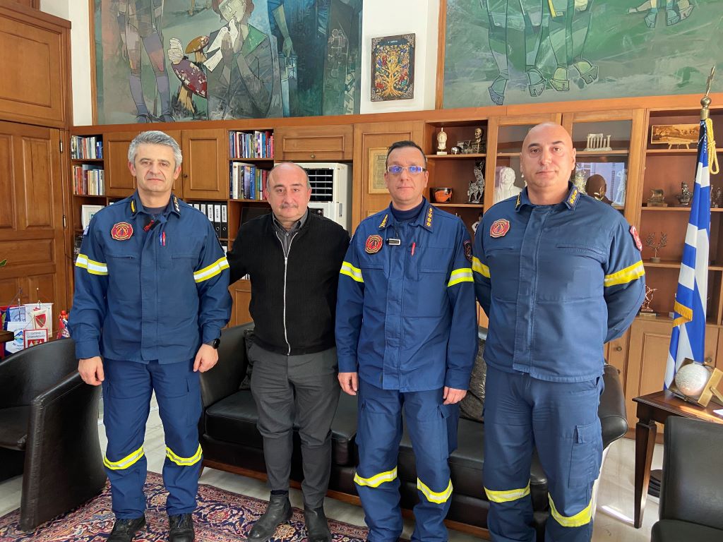 Εθιμοτυπική επίσκεψη στον Δήμαρχο Τρικκαίων Νίκο Σακκά πραγματοποίησε ο Υποστράτηγος του Πυροσβεστικού Σώματος Παναγιώτης Κυπριωτέλλης, Συντονιστής Επιχειρήσεων στις Διοικήσεις Στερεάς Ελλάδας και Θεσσαλίας. Ο κ. Σακκάς υποδέχθηκε τον κ. Κυπριωτέλλη στο Δημαρχείο Τρικκαίων την Παρασκευή 7 Μαρτίου 2025 και συζητήθηκε θέματα που αφορούν την Αυτοδιοίκηση και την Π.Υ.Στη συνάντηση παραβρέθηκαν επίσης, ο διοικητής των Πυροσβεστικών Υπηρεσιών Τρικάλων, Πύραρχος κ. Ιωάννης Λιάπης και ο υποδιοικητής της Πυροσβεστικής Υπηρεσίας Τρικάλων, Αρχιπύραρχος κ. Θωμάς Μιχαήλ.