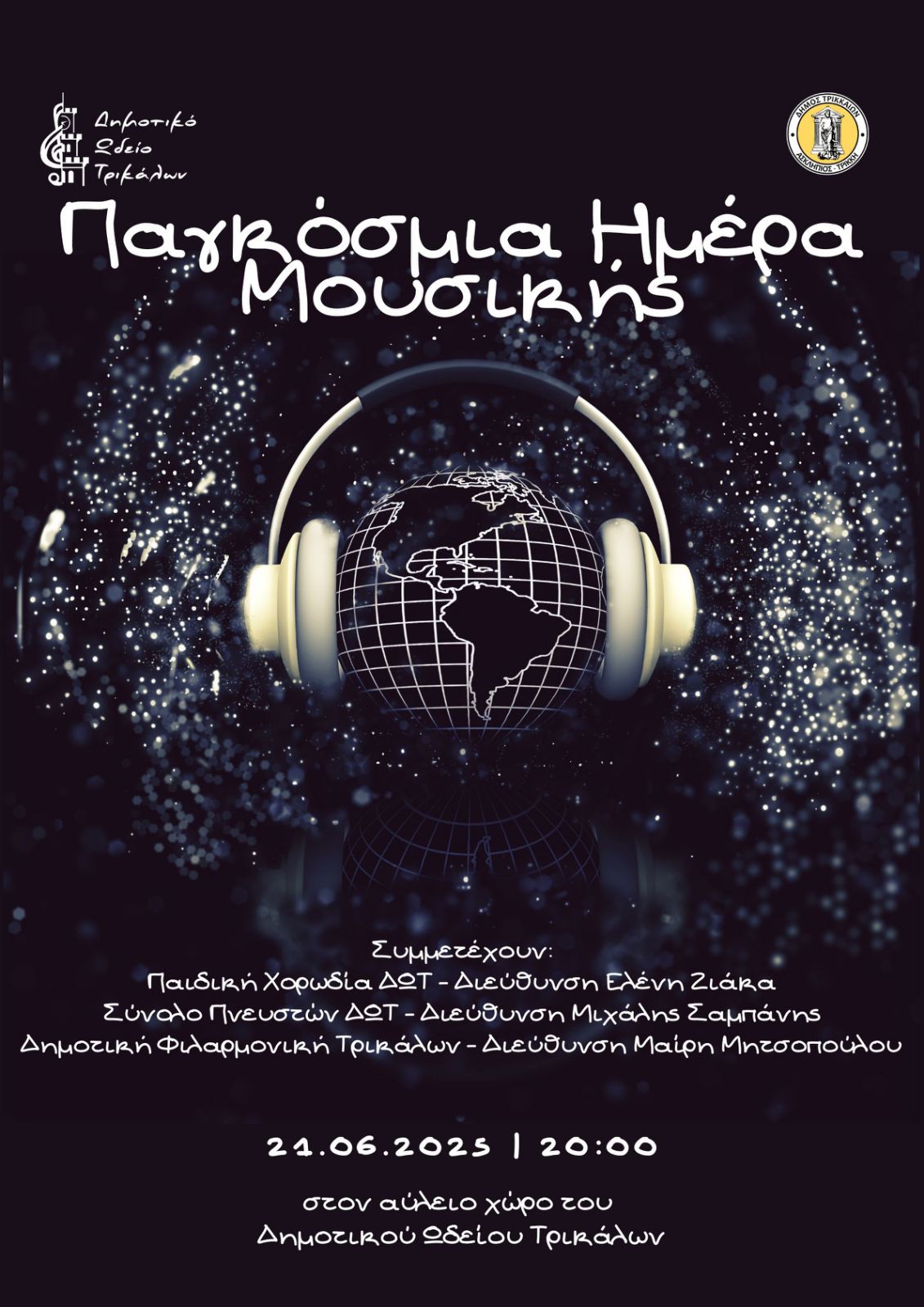 Μια δεύτερη μουσική εκδήλωση παρουσιάζει στο τρικαλινό κοινό, το Δημοτικό Ωδείο Τρικάλων. πρόκειται για την εκδήλωση στο πλαίσιο των πενθήμερων δράσεων για τον εορτασμό της Ευρωπαϊκής Ημέρας Μουσικής 2025. Η εκδήλωση θα πραγματοποιηθεί το Σάββατο 21 Ιουνίου 2025, στον αύλειο χώρο του Δημοτικού Ωδείου, στις 20:00.