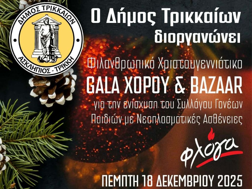 Και το 2025 ο Δήμος Τρικκαίων διοργανώνει το φιλανθρωπικό χριστουγεννιάτικο Gala χορού για την ενίσχυση του Συλλόγου Γονέων με νεοπλασματικές ασθένειες «Φλόγα».