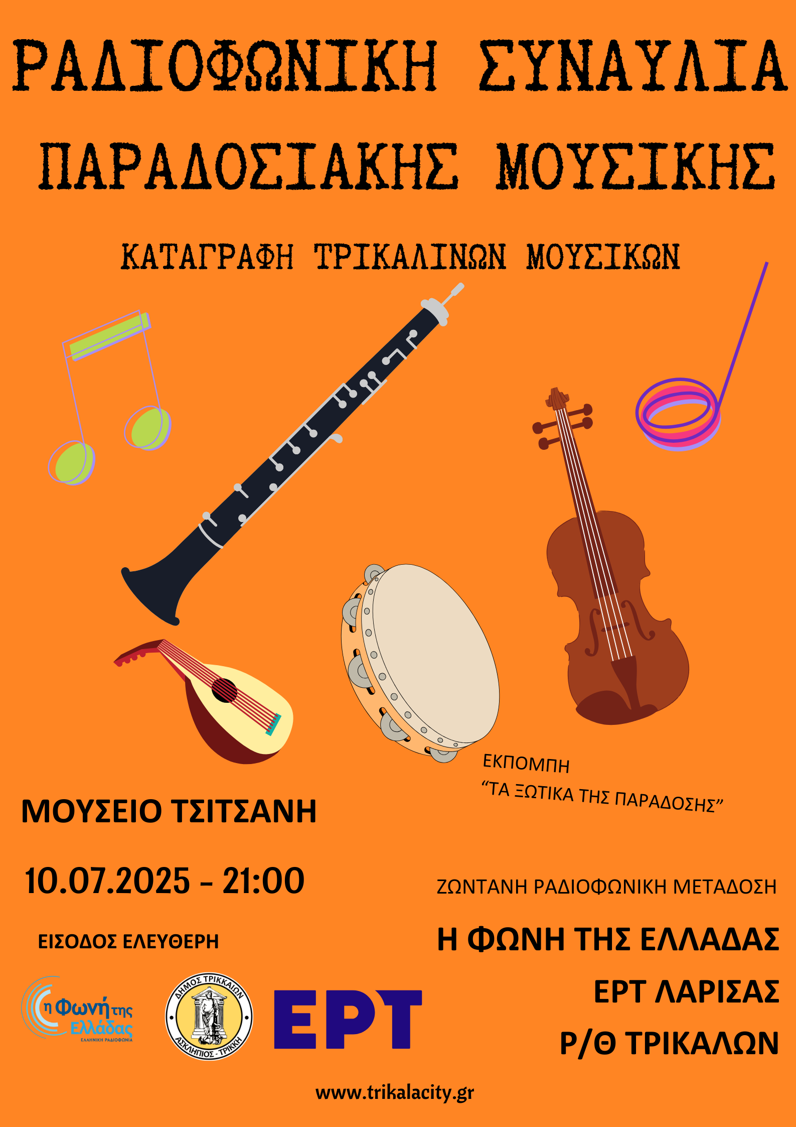 Ετσι, την Πέμπτη 10 Ιουλίου 2025, στην αίθουσα των εκδηλώσεων του Μουσείου Τσιτσάνη, θα πραγματοποιηθεί ζωντανή συναυλία, η οποία θα μεταδοθεί ταυτόχρονα από τη «Φωνή της Ελλάδας» και την ΕΡΤ Λάρισας. Η συναυλία θα γίνει με είσοδο ελεύθερη για το κοινό από τις 21:00 έως τις 23:00 με σκοπό την καταγραφή των κορυφαίων μουσικών της δημοτικής παράδοσης των Τρικάλων, Γιάννη Γκουζιώτη (τραγούδι) και Μιλτιάδη Παρασκευά (βιολί), οι οποίοι θα συμπράξουν με μουσικούς της νεότερης γενιάς:
