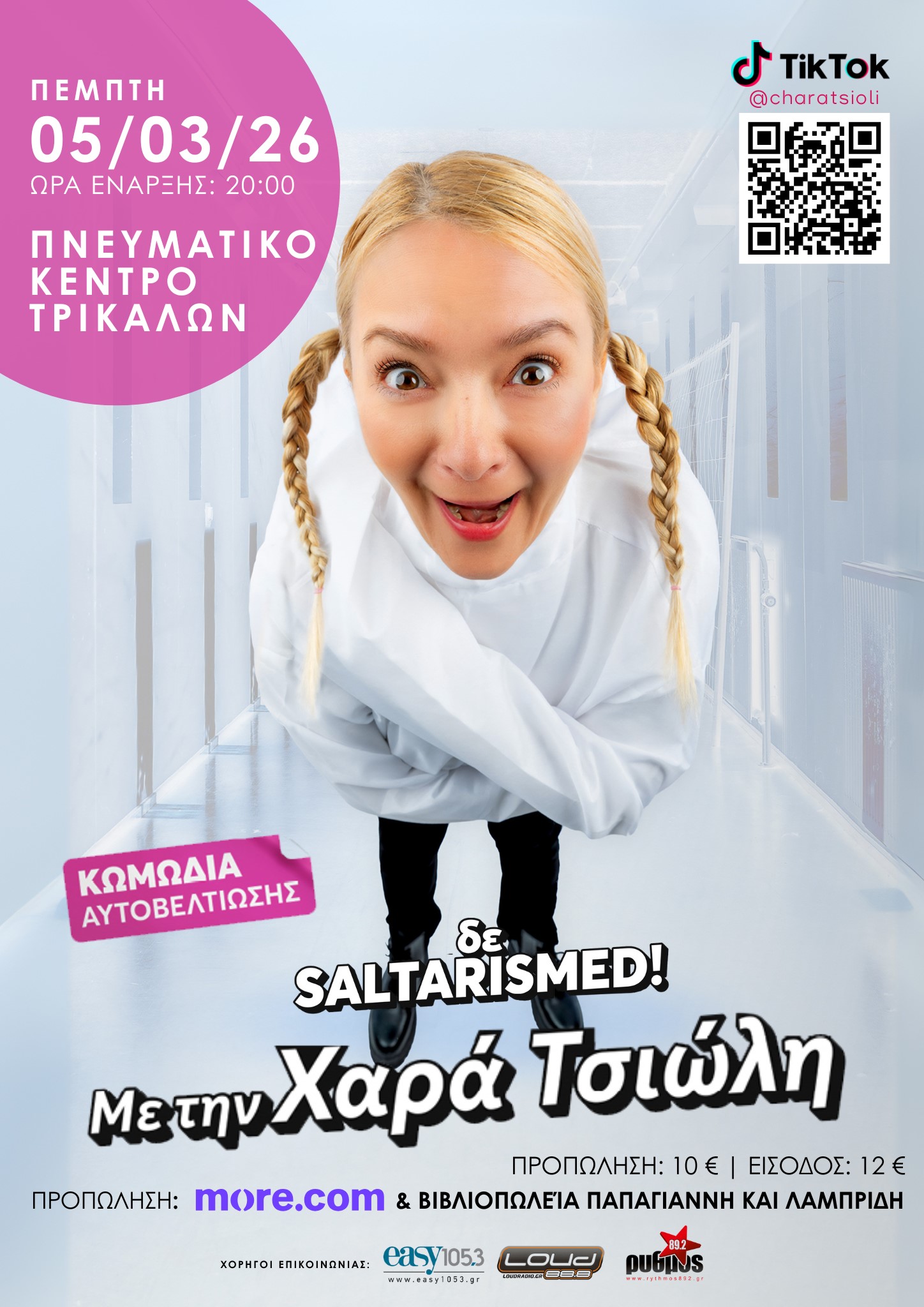Μετά τις επιτυχημένες sold out παραστάσεις σε Ελλάδα και εξωτερικό (Γερμανία, Σουηδία, Ελβετία και Αυστραλία (Μελβούρνη και το διεθνές φεστιβάλ κωμωδίας του Σίδνεϋ) η Χαρά Τσιώλη έρχεται στα Τρίκαλα!