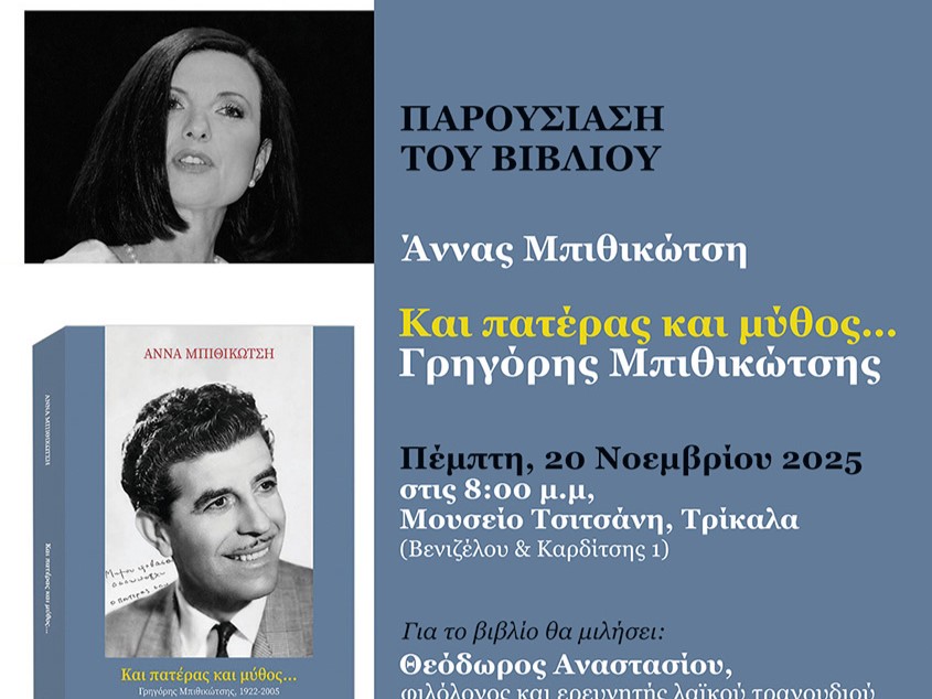 Η εκδήλωση θα πραγματοποιηθεί την Πέμπτη 20 Νοεμβρίου, ώρα 20:00, στο Μουσείο Τσιτσάνη.