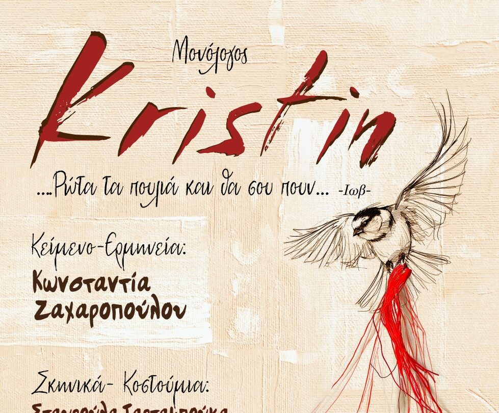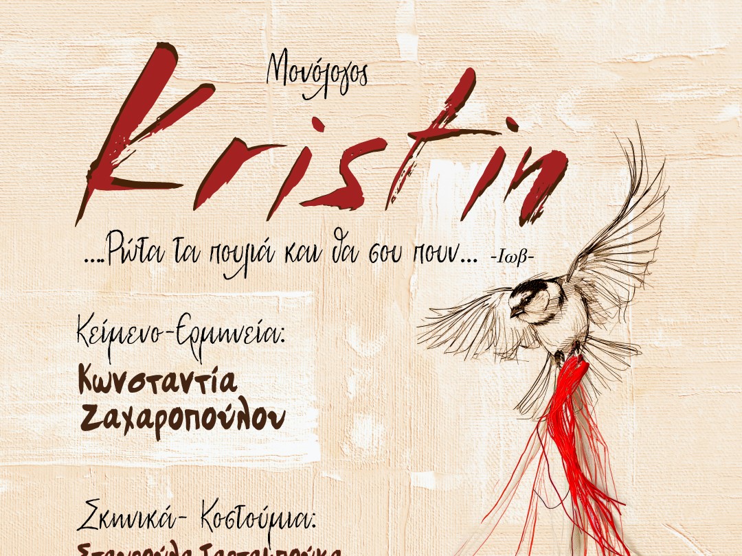 Στον θεατρικό μονόλογο «ΚΡΙΣΤΙΝ»  ξεδιπλώνεται η ιστορία μιας γυναίκας που κουβαλάει το βάρος του παιδικού ψυχικού τραύματος, την «αναπηρία» που γεννιέται  όταν κάποιος μεγαλώνει σε μια δυσλειτουργική οικογένεια. Στην Κριστίν σιγοκαίει η τεράστια δύναμη της ψυχής, η ακατανίκητη επιθυμία να βρει τη χαρά και την άνθισή της. Μπορεί μια και μόνο ανάμνηση ευτυχίας να ενεργοποιήσει την έξοδο προς τη ζωή και την ενηλικίωσή της;