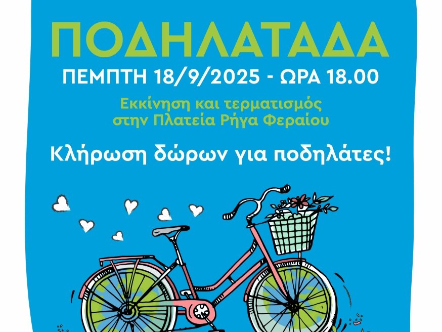 Μια ακόμη μεγάλη ποδηλατοβόλτα διοργανώνει ο Δήμος Τρικκαίων. Την Πέμπτη 18 Σεπτεμβρίου 2025, με το αγαπημένο μέσο μετακίνησης όλων των τρικαλινών, ακολουθούμε μια διαδρομή τόσο στο κέντρο της πόλης με τους ποδηλατόδρομους, όσο και περιφερειακά. Η εκδήλωση διοργανώνεται στο πλαίσιο της Ευρωπαϊκής Εβδομάδας Κινητικότητας 2025 και αφορά… όλους και όλες, κάθε ηλικίας.