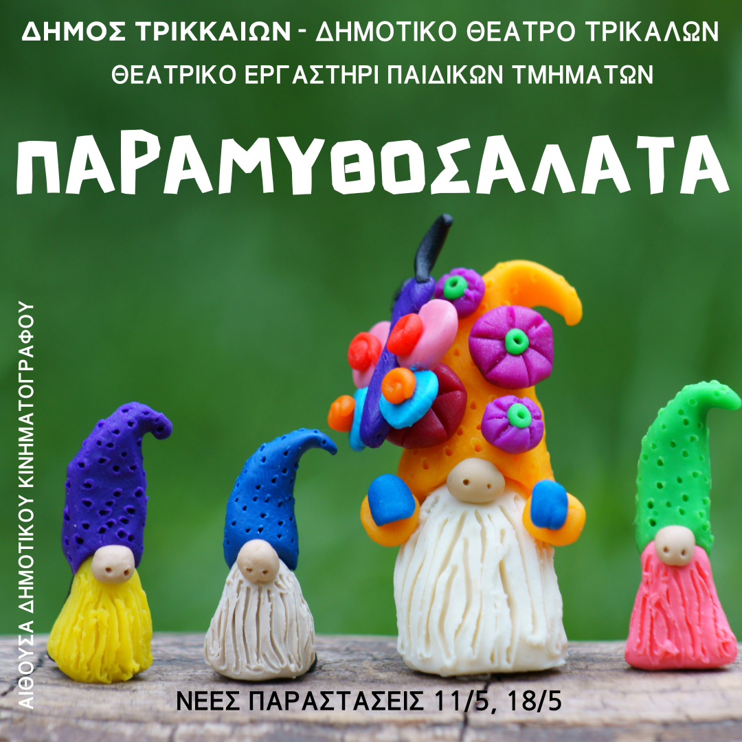Στο Δημοτικό Κινηματογράφο του Μύλου Ματσόπουλου θα παρουσιαστεί η θεατρική παράσταση «Παραμυθοσαλάτα», που βασίζεται σε παρωδίες κλασικών παραμυθιών. Οι μαθητές των παιδικών τμημάτων του θεατρικού εργαστηρίου του Δημοτικού Θεάτρου Τρικάλων, μέσα από θεατρικά παιχνίδια, αυτοσχεδιασμούς, ασκήσεις δημιουργικής έκφρασης και παιχνίδια ρόλων, προσέγγισαν βασικά μοτίβα κλασικών παραμυθιών με έντονο το στοιχείο του κωμικού.