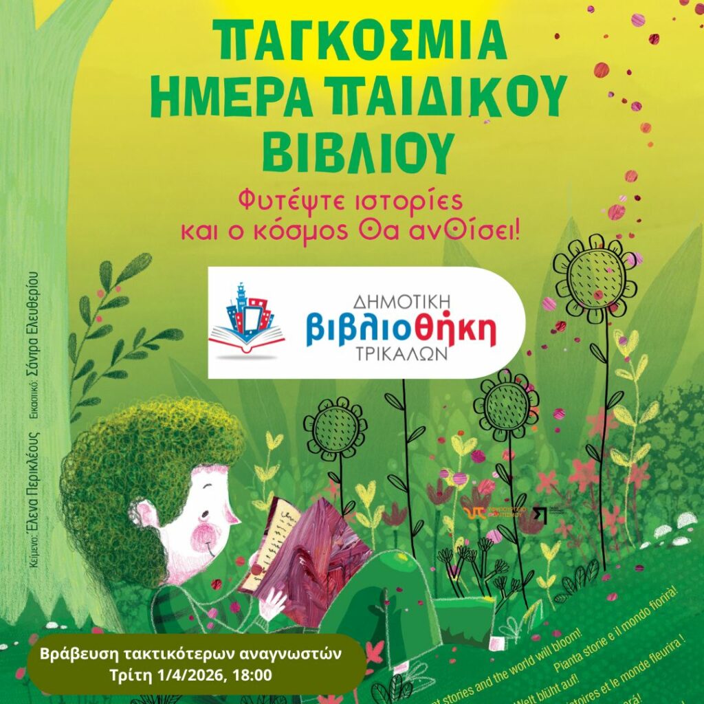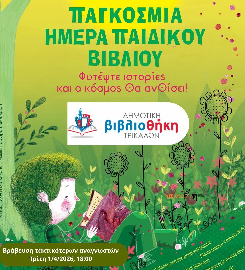 Με βράβευση των τακτικότερων μικρών αναγνωστών/τριών της η Δημοτική Βιβλιοθήκη Τρικάλων τιμά και το 2026 την Παγκόσμια Ημέρα Παιδικού Βιβλίου, που εορτάζεται κάθε χρόνο στις 2 Απριλίου, γενέθλια ημέρα του Δανού παραμυθά Χανς Κρίστιαν Αντερσεν . Συμμετέχοντας στον εορτασμό, βραβεύονται 42 αναγνώστες/τριες, που απέδειξαν και με αριθμούς την αγάπη τους για το βιβλίο. Η εκδήλωση θα πραγματοποιηθεί την Τετάρτη 1 Απριλίου στις 18:00, στον χώρο της Βιβλιοθήκης, η οποία θα παραμείνει κλειστή για κοινό.