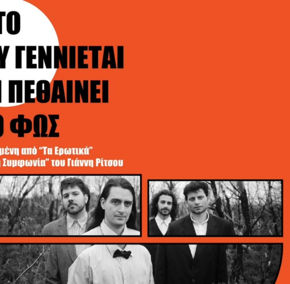 Η θεατρική ομάδα Volya παρουσιάζει την παράσταση «Αυτό που γεννιέται και πεθαίνει στο φως», μια πρωτότυπη σκηνική σύνθεση θραυσμάτων από την Εαρινή Συμφωνία και τα Ερωτικά του Γιάννη Ρίτσου. Η παράσταση αποτελεί μια πρωτότυπη σκηνική σύνθεση θραυσμάτων από την «Εαρινή Συμφωνία» και τα «Ερωτικά» του Γιάννη Ρίτσου, εστιάζοντας στην αναζήτηση του έρωτα, την απώλεια και την ανθρώπινη ανάγκη για σύνδεση. Με οδηγό τη μουσικότητα του λόγου του ποιητή, τέσσερις ηθοποιοί εξερευνούν σκηνικά τη συναισθηματική έκφραση, την ευαισθησία και τα πρότυπα ανδρισμού, φωτίζοντας το πώς αυτά διαμορφώνουν τις ερωτικές και υπαρξιακές μας σχέσεις.