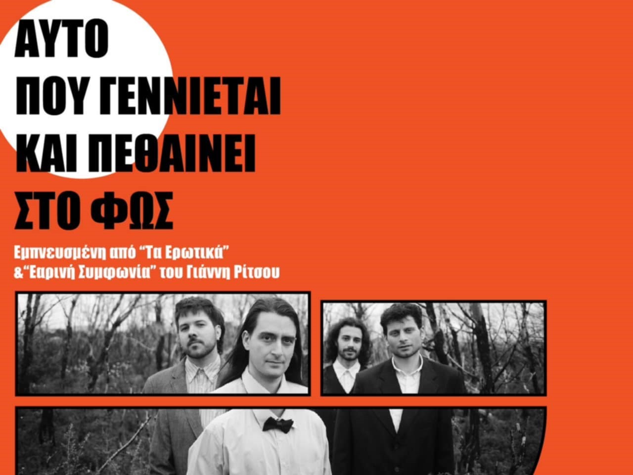 Μια πρωτότυπη θεατρική σύνθεση, βασισμένη στην Εαρινή Συμφωνία και τα Ερωτικά του Γιάννη Ρίτσου, παρουσιάζεται την Κυριακή 21 Δεκεμβρίου 2025 στο Μουσείο Τσιτσάνη. Πρόκειται για την παράσταση με τίτλο «Αυτό που γεννιέται και πεθαίνει στο φως».