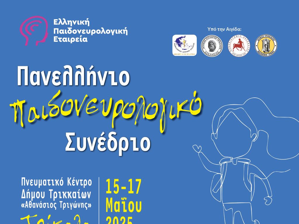 Στα Τρίκαλα διοργανώνεται το τριήμερο15 έως 17 Μαΐου 2025 το Πανελλήνιο Παιδονευρολογικό Συνέδριο. Στο Πνευματικό Κέντρο Δήμου Τρικκαίων «Αθανάσιος Τριγώνης», το συνέδριο θα συγκεντρώσει Παιδονευρολόγους, Επιστήμονες Υγείας και επαγγελματίες του χώρου από όλη την Ελλάδα και το εξωτερικό, που θα συζητήσουν και θα ανταλλάξουν απόψεις σχετικά με τις τελευταίες εξελίξεις στον τομέα της Παιδονευρολογίας.