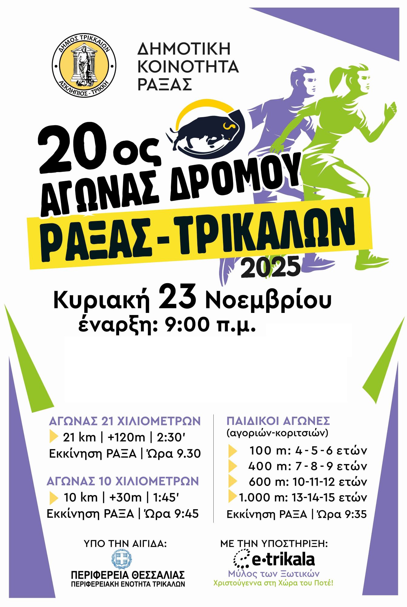 Για εικοστή χρονιά πραγματοποιείται τον Νοέμβριο του 2025 ο «Αγώνας Δρόμου Ράξος – Τρικάλων».