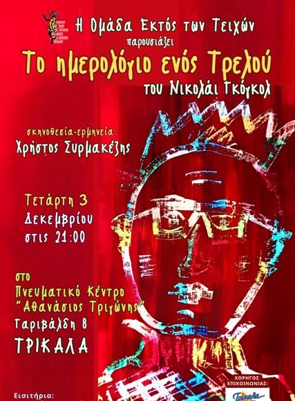 Η Ομάδα Εκτός των Τειχών παρουσιάζει το μοναδικής ψυχολογικής ακριβείας έργο του Νικολάι Γκόγκολ «Το ημερολόγιο ενός τρελού». Το «Ημερολόγιο», γραμμένο το 1835, αποτελεί ένα σχεδόν αυτοβιογραφικό κείμενο του ίδιου του συγγραφέα.