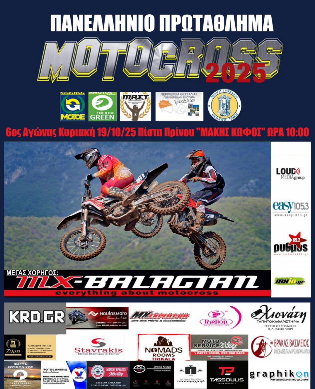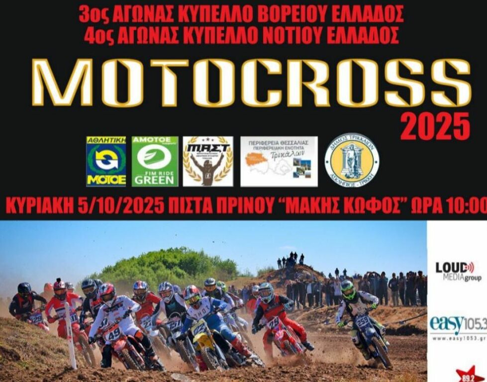 Δύο αγώνες Πανελληνίου Κυπέλλου και Πρωταθλήματος Motocross φιλοξενεί η πίστα στον Πρίνο του Δήμου Τρικκαίων. Την Κυριακή 5 Οκτωβρίου διεξάγονται στην πίστα «Μάκης Κωφός», ο 3ος αγώνας Κυπέλλου Β. Ελλάδας και ο 4ς Αγώνας κυπέλλου Ν. Ελλάδας. Την Κυριακή 19 Οκτωβρίου διεξάγεται ο 6ος αγώνας για το Πανελλήνιο Πρωτάθλημα. Ολοι οι αγώνες ξεκινούν στις 10 και οι απονομές, τη μεν Κυριακή 5/10 στις 18:00 τη δε Κυριακή 19/10 στις 17:30.