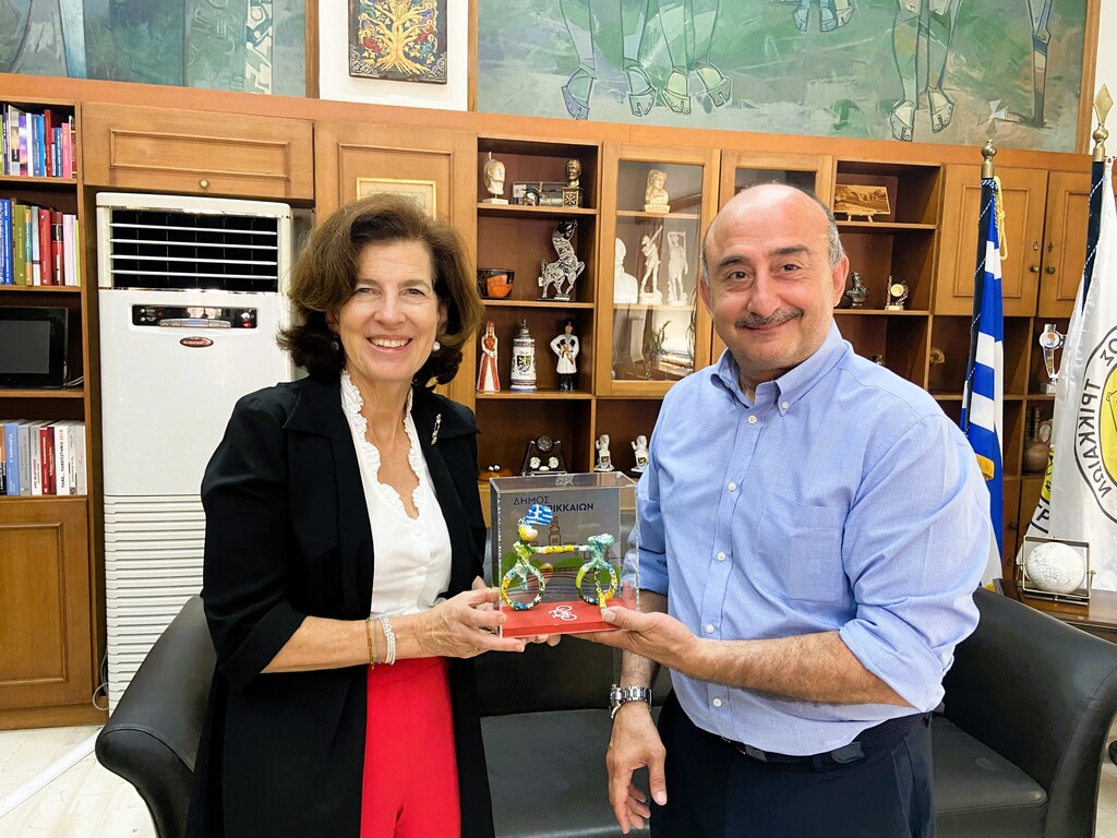 Η κ. Auer συναντήθηκε με τον Δήμαρχο Τρικκαίων και πρόεδρο της ΠΕΔ Θεσσαλίας Νίκο Σακκά, ο οποίος εξέφρασε τις ευχαριστίες του για την επίσκεψη της ΑΕ της Πρέσβειρας και αναφέρθηκε συνολικά στις δράσεις, δραστηριότητες, πρωτοβουλίες και προγράμματα που υλοποιεί ο Δήμος Τρικκαίων.