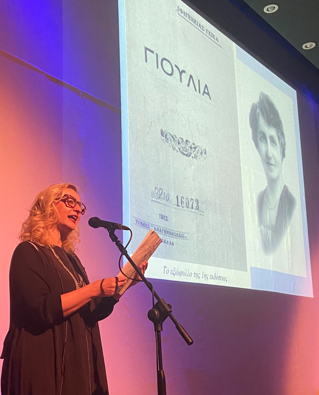 Σημαντική στιγμή, η αναφορά της εγγονής της ποιήτριας, ομοίως Ιφιγένεια Κοπάδη (Kopadis), η οποία στα ελληνικά αναφέρθηκε στη γιαγιά της και ευχαρίστησε τους διοργανωτές.