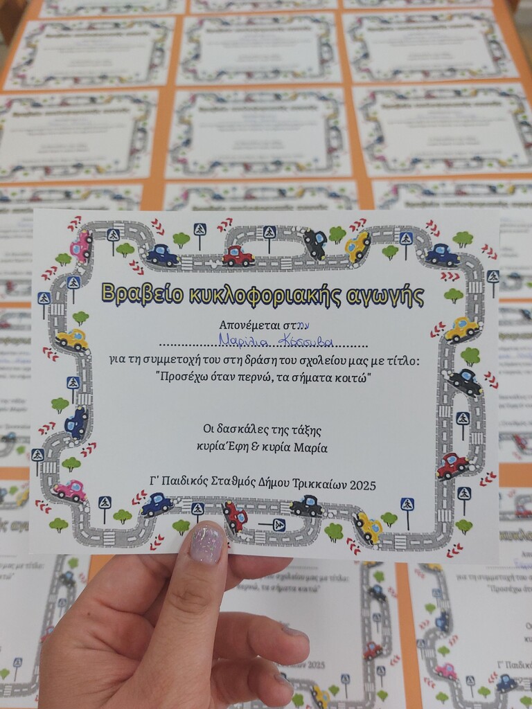 Αυτές οι πρώτες γνώσεις μπορούν να επαναληφθούν και να εξειδικευτούν στο Πάρκο Κυκλοφοριακής Αγωγής που διαθέτει ο Δήμος Τρικκαίων και το οποίο επισκέπτονται μαθητές και μαθήτριες από δεκάδες σχολεία.