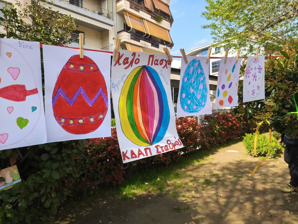– ζωγράφισαν θέματα του Πάσχα στην πλατεία και σε στρατσόχαρτα