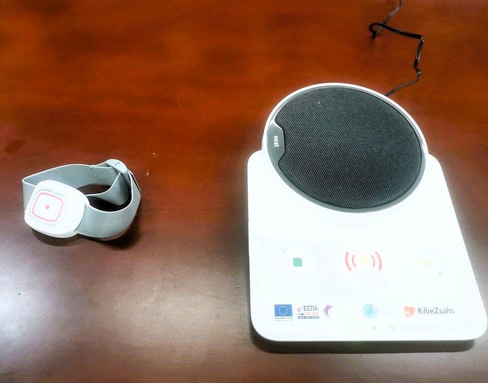 Πρόκειται ουσιαστικά για μία συσκευή σαν «έξυπνο» ρολόι που φορούν οι ωφελούμενοι/ες στο χέρι και μία σταθερή συσκευή που τοποθετείται στην πρίζα. Κάθε μία από αυτές, διαθέτει ένα «κουμπί πανικού» που, μόλις πατηθεί, ενεργοποιείται ένα τηλεφωνικό κέντρο. Μέσω αυτού, πιστοποιημένοι κοινωνικοί λειτουργοί και ψυχολόγοι ξεκινούν τη διαδικασία για παροχή φροντίδας.