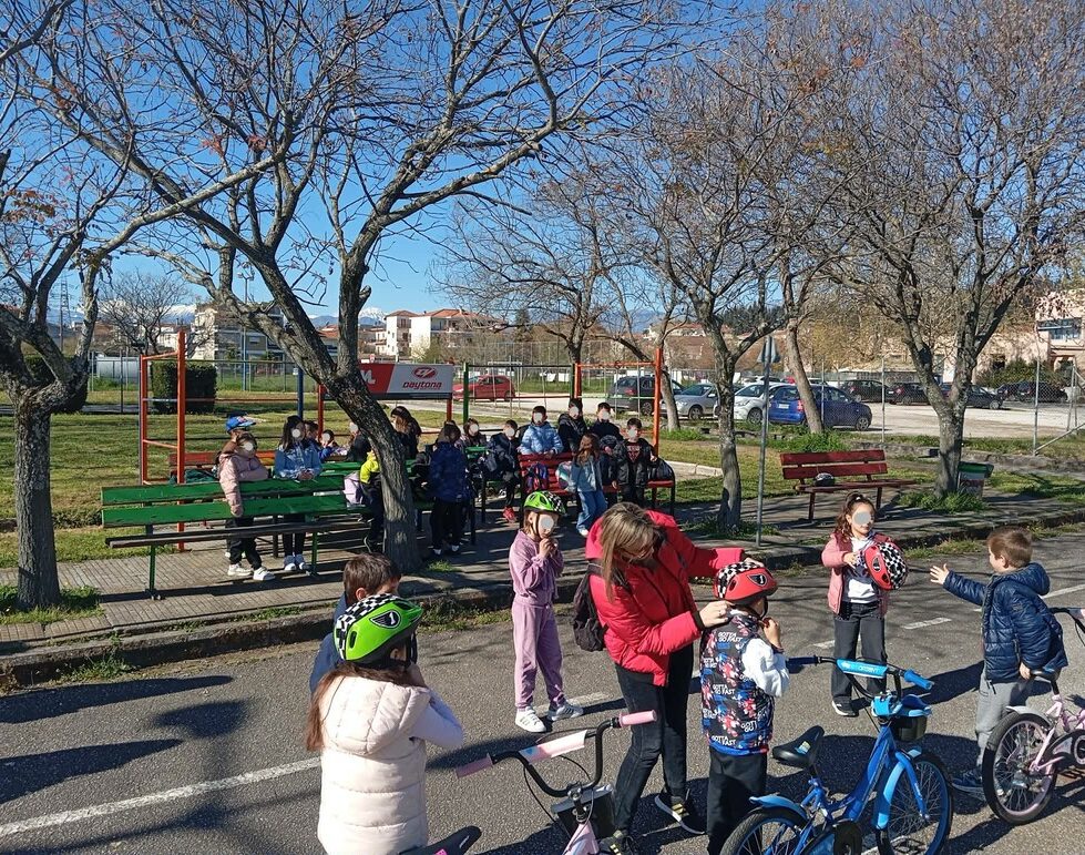 Τη Δευτέρα 30 Μαρτίου 2026 οι μαθητές/τριες, με τη συνοδεία των εκπαιδευτικών, επισκέφθηκαν το Πάρκο Κυκλοφοριακής αγωγής του Δήμου Τρικκαίων. Ένα Πάρκο που έχει ως αποκλειστικό στόχο, την εκμάθηση των πρώτων, βασικών κανόνων κίνησης των παιδιών, είτε ως πεζών, είτε ως οδηγών ποδηλάτων.