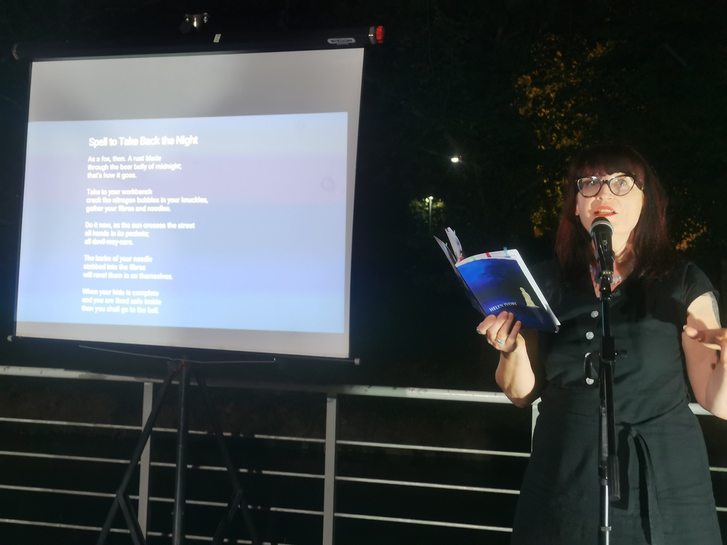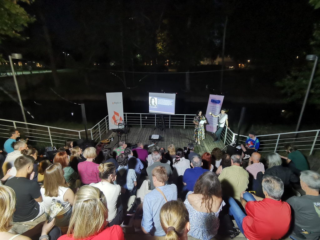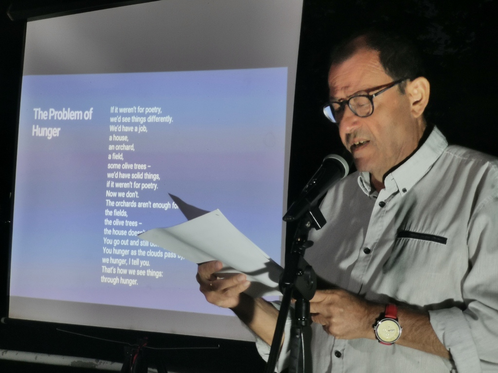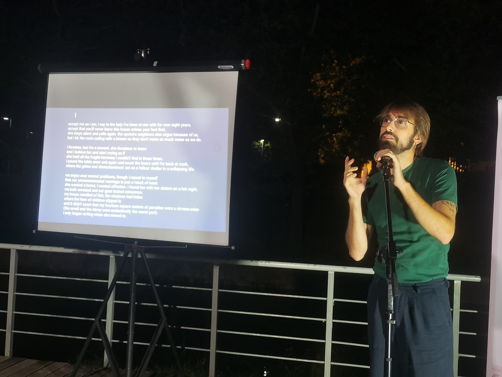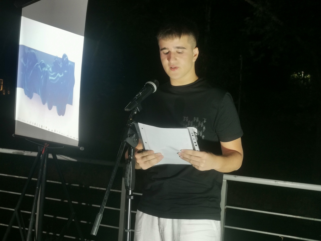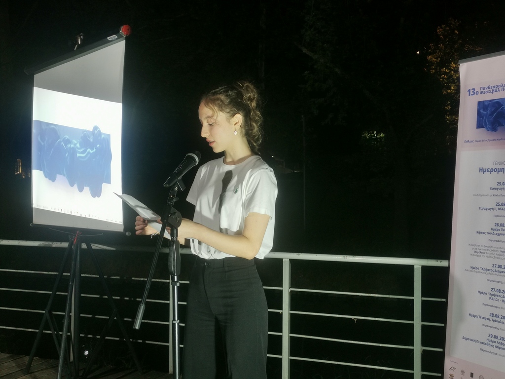 Ο παρουσιαστής κ. Νικόλας Κουτσοδόντης προσφωνούσε τους ποιητές, που από τα Τρίκαλα και το εξωτερικό χρωμάτισαν μια ακόμη όμορφη βραδιά στον Ληθαίο ποταμό. Κατά σειρά απήγγειλαν ποιήματά τους οι Κώστας Καναβούρης, Γεωργία Κολοβελώνη, Παρασκευή Αλέξη, Ελένη Αλεξίου, Απόστολος Γουγουλάκης, Miguel Rodriguez Monteavaro (Ισπανία), Helen Ivory (Ηνωμένο Βασίλειο), Yolanda Castaño (Ισπανία), Θωμάς Τσαλαπάτης, Marianne Catzaras (Τυνησία), Ηλίας Κεφάλας, Zita Iszó (Ουγγαρία/Τσεχία), Σωκράτης Καμπουρόπουλος, Σταύρος Ζαφειρίου. Ο Απόστολος Γουγουλάκης επίσης έντυσε μουσικά στίχους, σε μουσικό διάλειμμα.