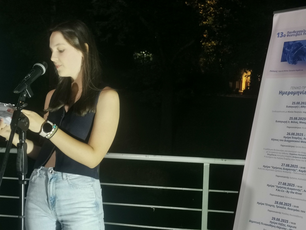 Εξαιρετικά όμορφη βραδιά ποίησης στα Τρίκαλα, στο πλαίσιο εκδηλώσεων του 13ου Πανθεσσαλικού Φεστιβάλ Ποίησης. Η τέταρτη ημέρα των εκδηλώσεων φιλοξενήθηκε στο πανέμορφο θεατράκι του Ληθαίου με τη στήριξη του Δήμου Τρικκαίων στη διοργάνωση του περιοδικού «Θράκα» με τη στήριξη του Υπουργείου Πολιτισμού και της Περιφέρειας Θεσσαλίας. Το Φεστιβάλ χαρακτηρίστηκε από τρία στοιχεία: μεγάλη προσέλευση ακροατών/τριών, διεθνείς παρουσίες, συμμετοχή μαθητών/τριών Λυκείου.