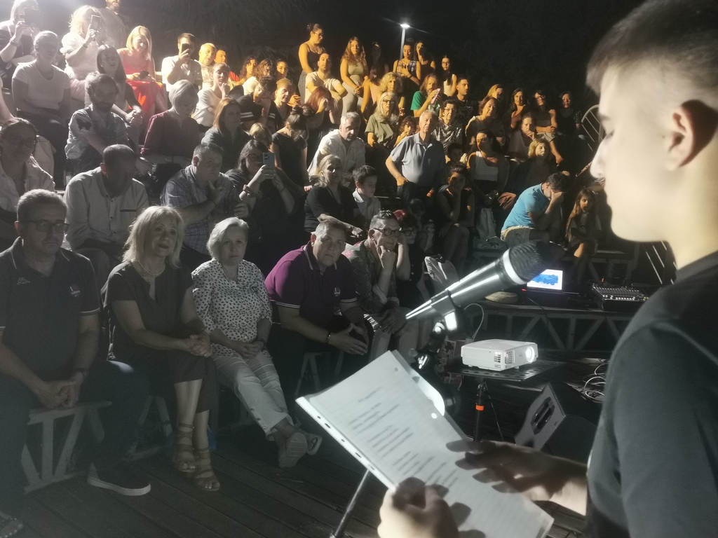 Εξαιρετικά σημενατική η πρωτοβουλία του Δήμου Τρικκάων να καλέσει να μετάσχουν στη συγκεριμενη βραδιά, μαθητές και μαθήτριες του 3ου ΓΕΛ Τρικάλων «Οδυσσέας Ελύτης». Διότι το εν λόγω σχολείο, όπως τόνισε και η διευθύντριά του κ. Βασιλική Σαρκατζή, διοργανώνει επί 12 χρόνια Συμπόσιο Ποίησης, μέσα από το οποίο τρεις μαθητές του σχολείου απήγγειλαν ποιήματά τους. Το κοινό ενθουσιάστηκε από τους Μαρίλια Ζαμπούρα, Δέσποινα Γκρόπα (αμφότερες Γ΄ Λυκείου) και Μάξιμος Κοκκώνης (Β΄ Λυκείου)