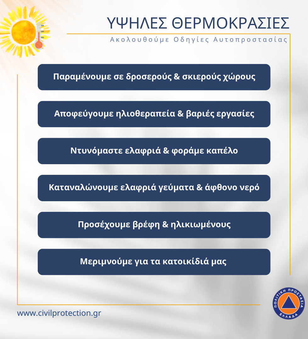 Ο Δήμος Τρικκαίων ενημερώνει τους πολίτες ότι ο καύσωνας εντάσσεται στα Επικίνδυνα Καιρικά Φαινόμενα.