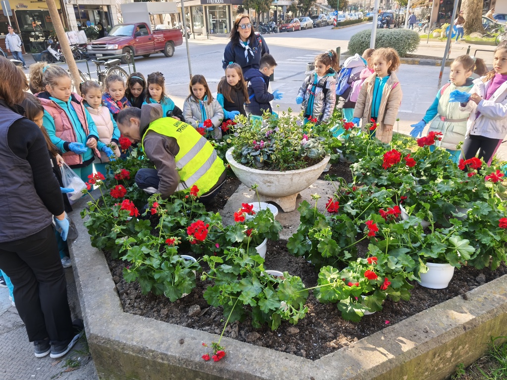 Παιδική αγάπη για το πράσινο και συνεργασία, χαρακτήρισαν τη δράση του κλάδου Αστεριών του Σώματος Ελληνικού Οδηγισμού και του Δήμου Τρικκαίων. Πρωί πρωί του Σαββάτου 14 Μαρτίου 2026, τα μικρά παιδιά του κλάδου, με τις αρχηγούς του «γαλαξία» κ. Πέννυ Κοντολάτη, Εφη Μπίλιου, Εφη Ντιροκάλτση, συγκεντρώθηκαν στον πεζόδρομο της Ασκληπιού.