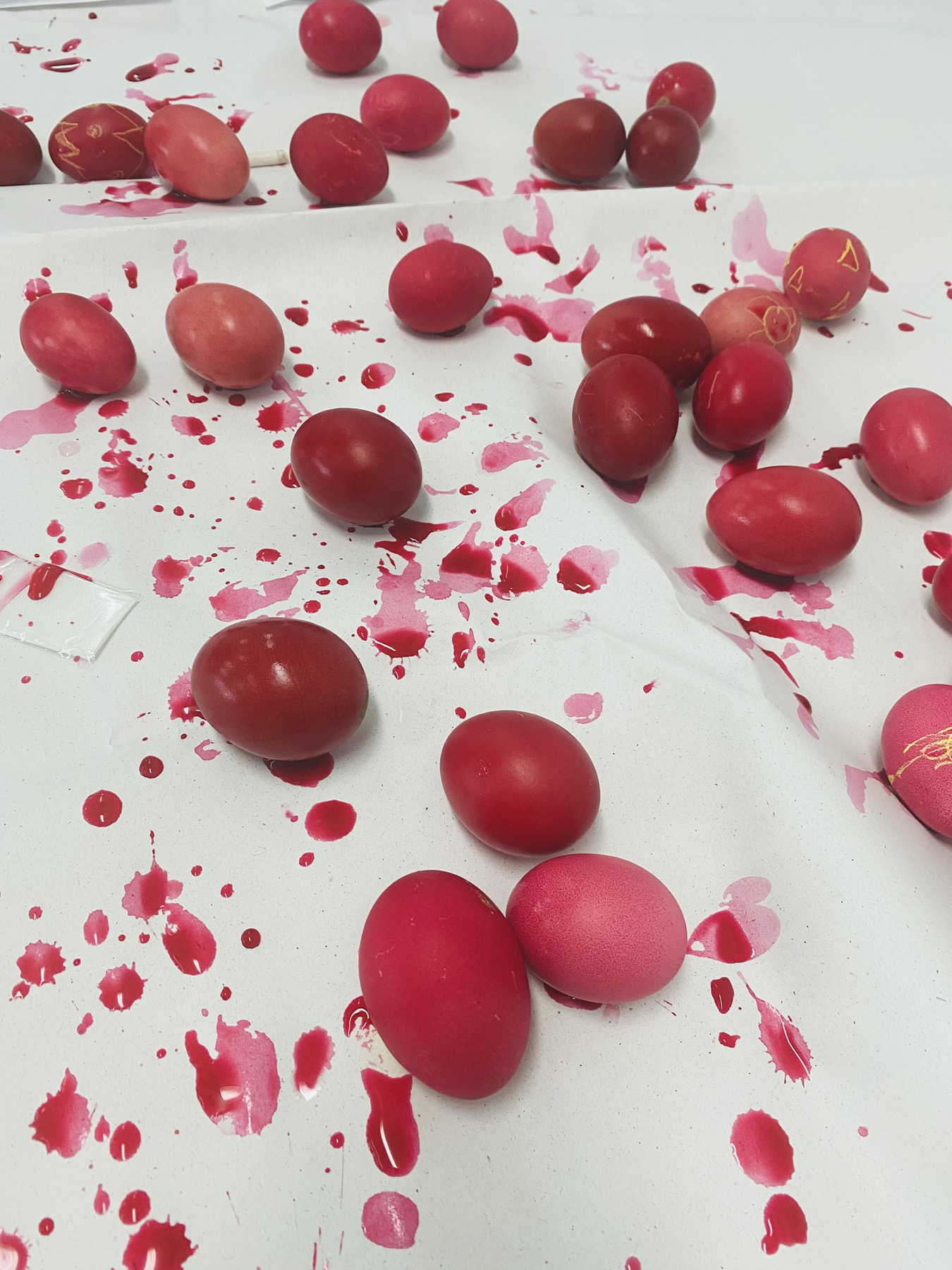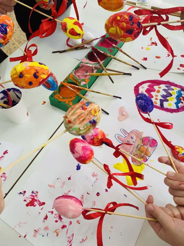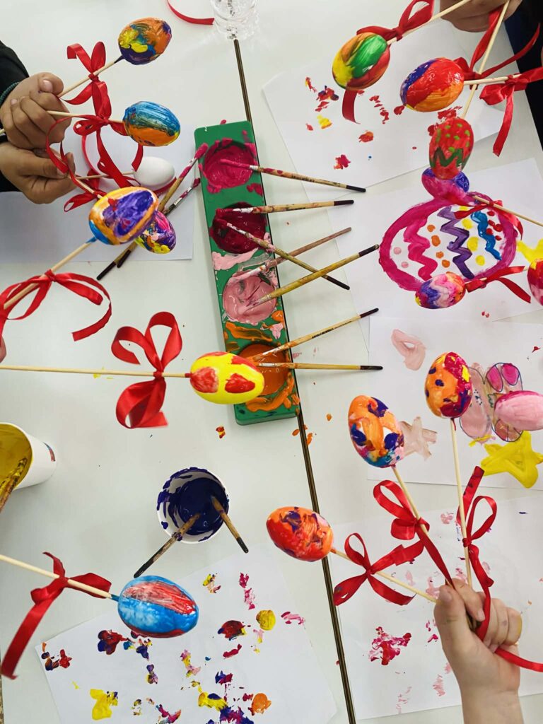 Οι πασχαλινές δράσεις ολοκληρώθηκαν τη Μεγάλη Τετάρτη με το βάψιμο των παραδοσιακών πασχαλινών αυγών, με τα παιδιά να δοκιμάζουν διαφορετικές τεχνικές και σχέδια, πετυχαίνοντας ένα ιδιαίτερα εντυπωσιακό αποτέλεσμα.