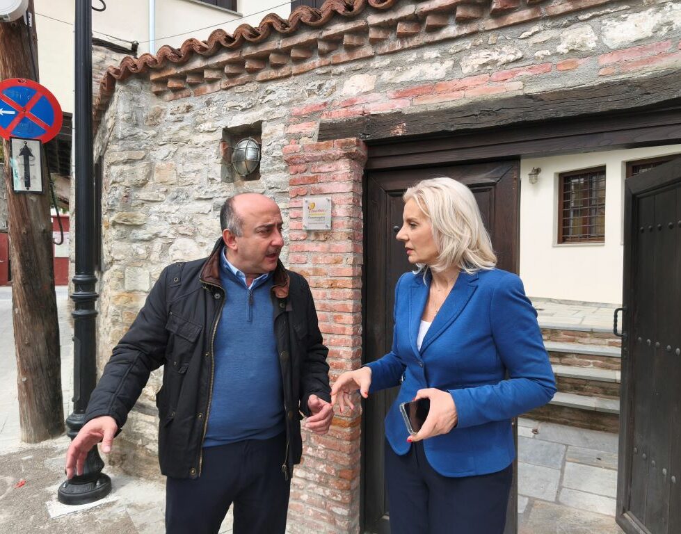 Εκεί, την ξενάγησε ο Δήμαρχος Τρικκαίων και πρόεδρος της ΠΕΔ Θεσσαλίας Νίκος Σακκάς, αναφέροντας ότι το παλιό αρχοντικό του 19ου αιώνα μεταμορφώθηκε