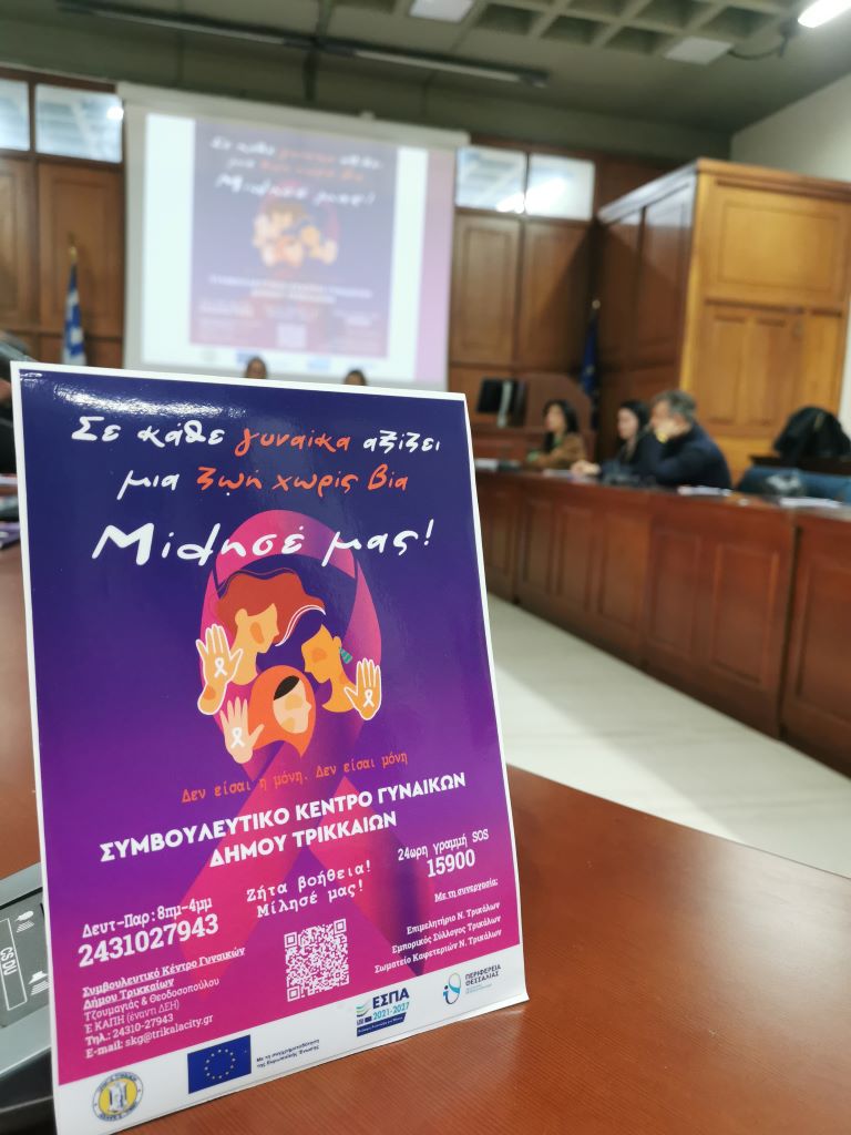 Είναι μια πρωτότυπη δράση αυτή που υλοποιείται στον Δήμο Τρικκαίων για την ενημέρωση σχετικά με το Συμβουλευτικό Κέντρο Γυναικών που λειτουργεί στα Τρίκαλα.