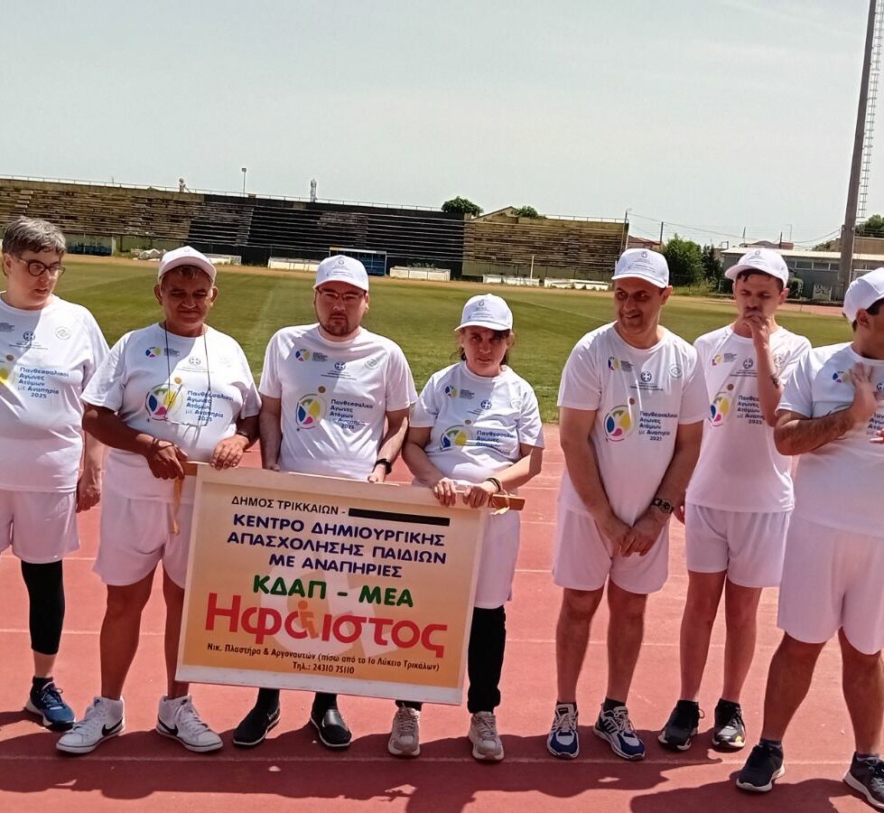 Στους πανθεσσαλικούς αγώνες στίβου ατόμων με αναπηρίες συμμετείχε η α΄ βάρδια του ΚΔΑΠ-ΜΕΑ «ΗΦΑΙΣΤΟΣ» του Δήμου Τρικκαίων, το Σάββατο 24 Μαΐου 2025. Οι αγώνες διεξήχθησαν στο στάδιο της Καρδίτσας και οι φιλοξενούμενοι/ες του ΚΔΑΠ ΜΕΑ συμμετείχαν σε διάφορα αγωνίσματα. Ενας εξ αυτών διακρίθηκε στο αγώνισμα του δρόμου 15 μ. με αμαξίδιο με συνοδό, καταλαμβάνοντας τη δεύτερη θέση, ενώ όλοι έλαβαν μετάλλια συμμετοχής. Η συγκεκριμένη δράση ενθουσίασε τους φιλοξενούμενους, καθώς ανέδειξε και πάλι τις δυνατότητες της άθλησης και της άμιλλας.