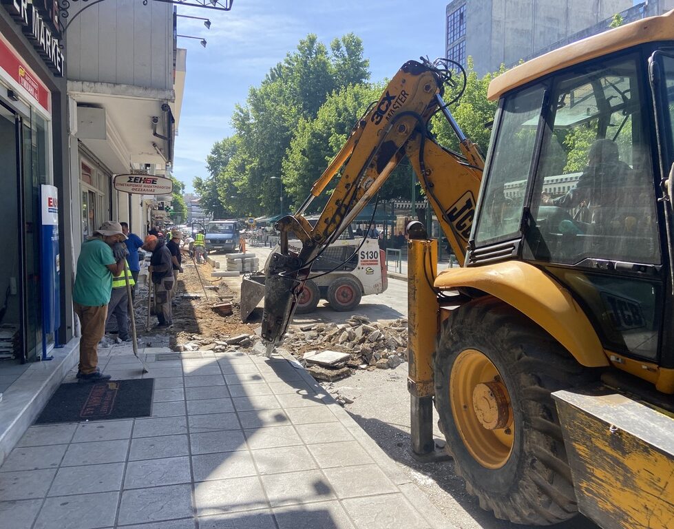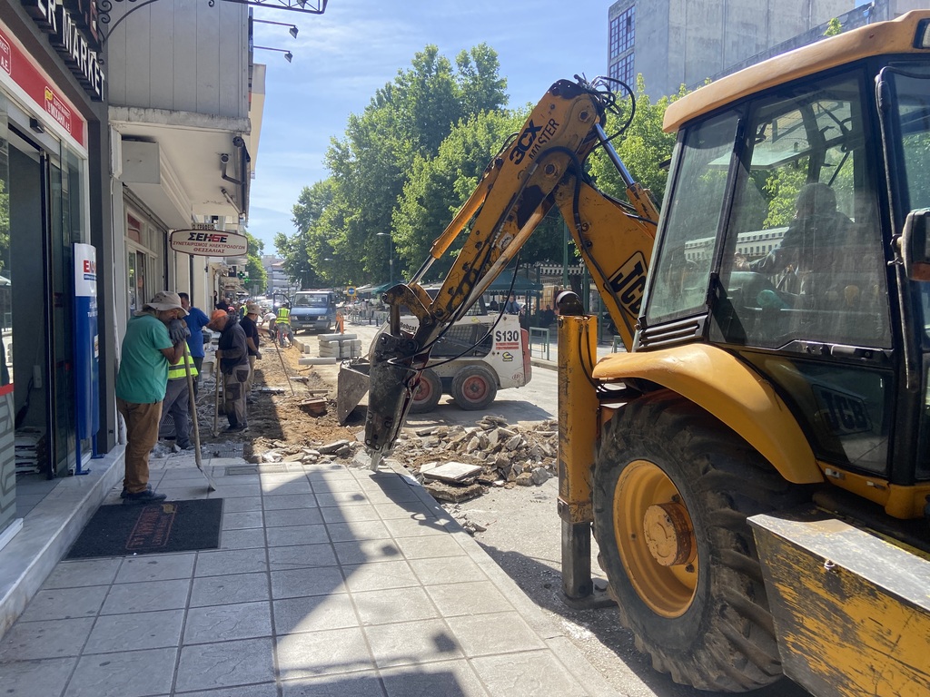 Στην οδό 28ης Οκτωβρίου συνεχίζεται η ανακατασκευή πεζοδρομίων στα Τρίκαλα – Κυκλοφοριακές αλλαγές