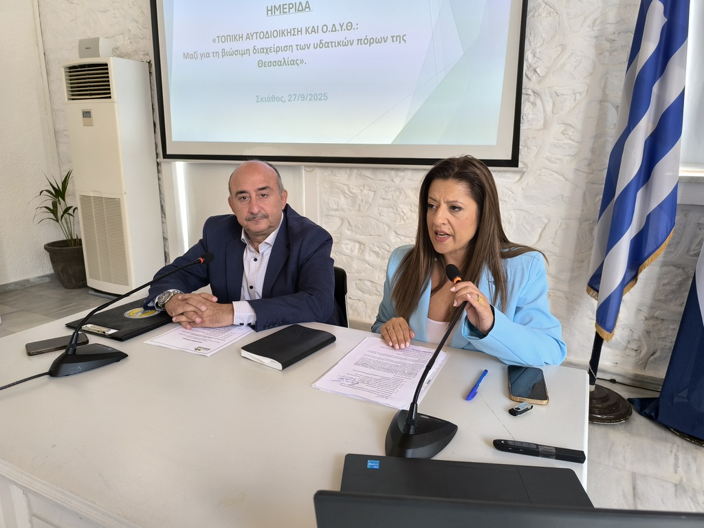 Σημαντικά στοιχεία για την κατανάλωση ύδατος στην ελληνική γεωργία, όπως και την ανάγκη συνεργασίας μεταξύ Οργανισμού Διαχείρισης Υδάτων Θεσσαλίας και Τοπικής Αυτοδιοίκησης αναδείχθηκαν στο πλαίσιο της ημερίδας που διοργάνωσε χθες, Σάββατο, η Περιφερειακή Ένωση Δήμων (Π.Ε.Δ.) Θεσσαλίας στο Πολιτιστικό Κέντρο Σκιάθου «Μπούρτζι» με θέμα τη βιώσιμη διαχείριση των υδάτινων πόρων της Θεσσαλίας.