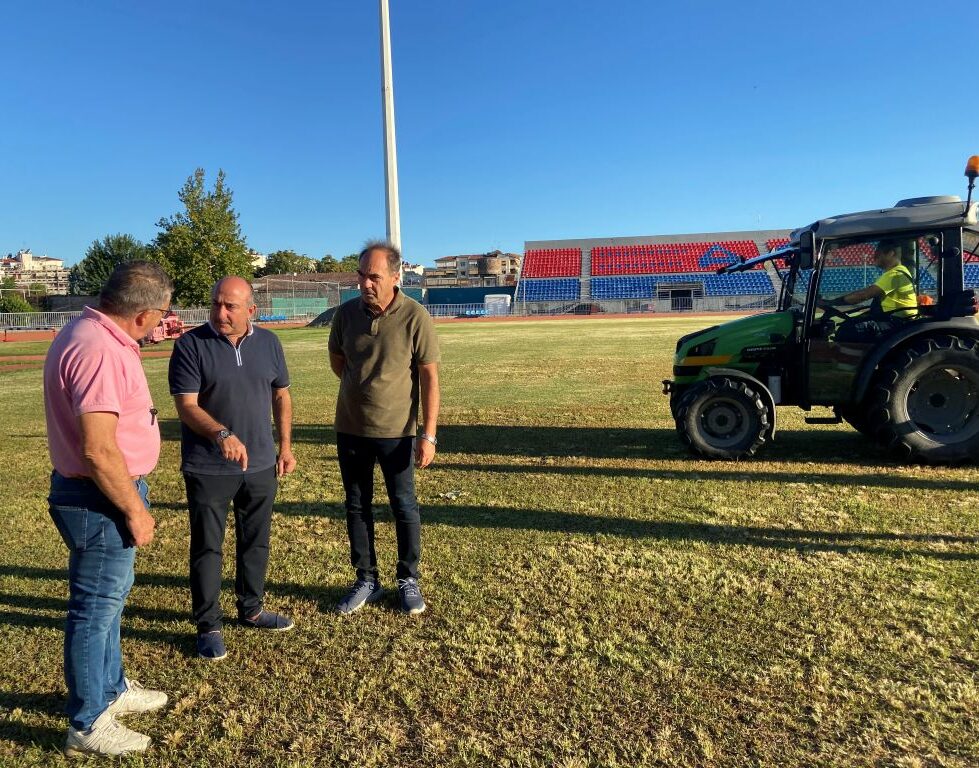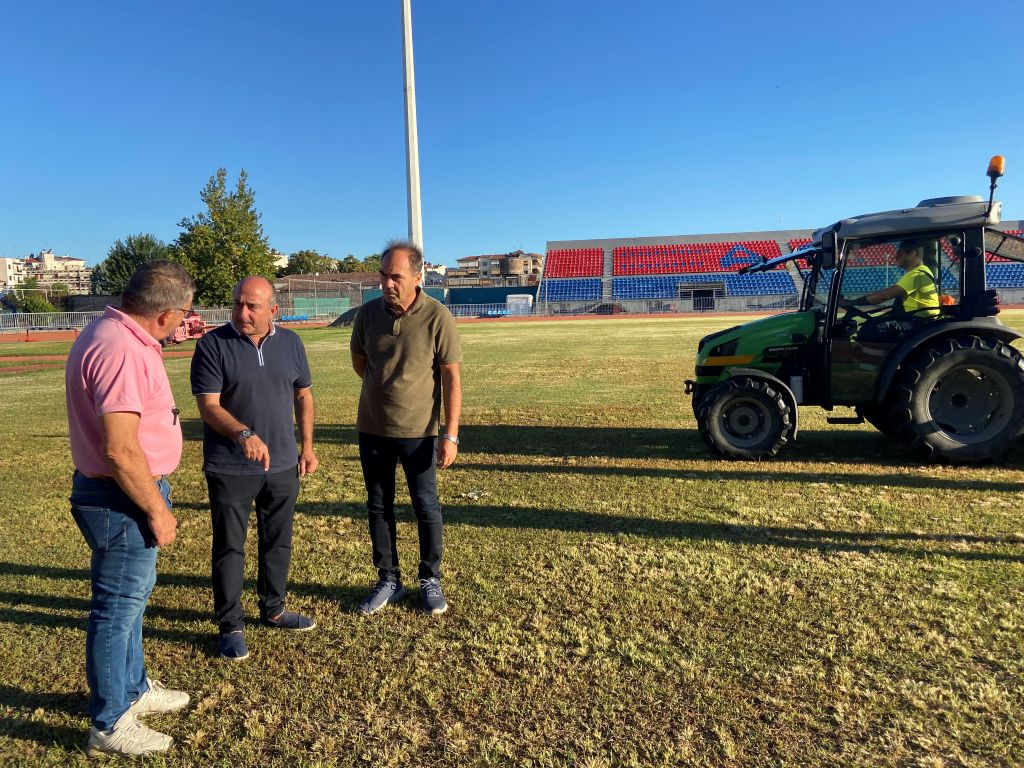 Συνεχίζει ο Δήμος Τρικκαίων τις εργασίες επανασποράς στο Δημοτικό Στάδιο Τρικάλων, προκειμένου το γήπεδο να αναμορφωθεί και να φιλοξενήσει ποδοσφαιρικούς αγώνες. Ο Δήμαρχος Τρικκαίων Νίκος Σακκάς επισκέφθηκε το γήπεδο το πρωί της Δευτέρας 1 Σεπτεμβρίου 2025, για να ενημερωθεί σχετικά με την πορεία των εργασιών. Ο αντιδήμαρχος Περιβάλλοντος και Αγροτικής Ανάπτυξης Παναγιώτης Ντιντής ενημέρωσε τον κ. Σακκά για την καινοτόμα διαδικασία της επανασποράς. Αυτή συνίσταται σε μια σημαντική προεργασία, με σκάψιμο, κόψιμο, καθαρισμό, τοποθέτηση άμμου, λιπασμάτων και άλλες εργασίες, μέχρι την τελική επανασπορά και τη χρήση του γηπέδου σε όσο το δυνατόν συντομότερο χρονικό διάστημα.
