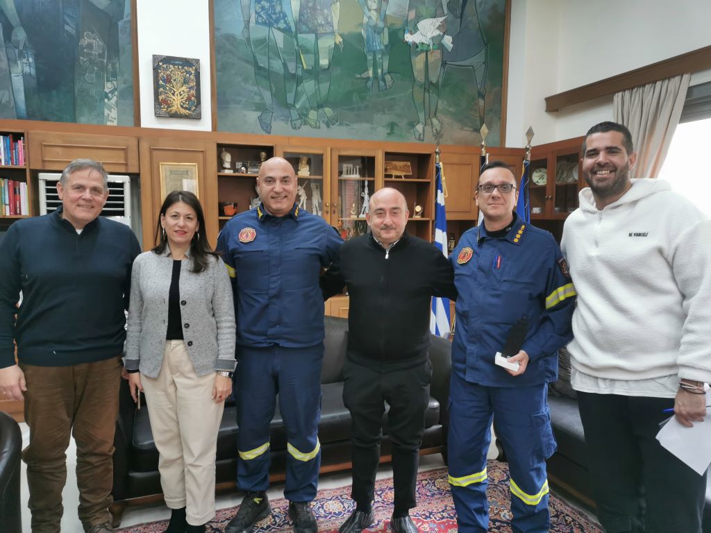 Γνωριμία με τη νέα ηγεσία των Πυροσβεστικών Υπηρεσιών στο νομό Τρικάλων είχε τη Δευτέρα 10 Φεβρουαρίου 2025 ο Δήμαρχος Τρικκαίων Νίκος Σακκάς. Ο νέος διοικητής των Πυροσβεστικών Υπηρεσιών, Πύραρχος κ. Ιωάννης Λιάπης συνοδευόμενος από τον υποδιοικητή της Πυροσβεστικής Υπηρεσίας Τρικάλων, Αρχιπύραρχος κ. Θωμάς Μιχαήλ, επισκέφθηκαν τον κ. Σακκά στο Δημαρχείο Τρικκαίων. Η εθιμοτυπική επίσκεψη εμπλουτίστηκε με συζήτηση για τη στενή συνεργασία σε σειρά θεμάτων, με έμφαση στην πολιτική προστασία και το ευρύ πεδίο κοινών παρεμβάσεων, με βάση την εμπειρία που αναδείχθηκε και από την περίοδο του Daniel.