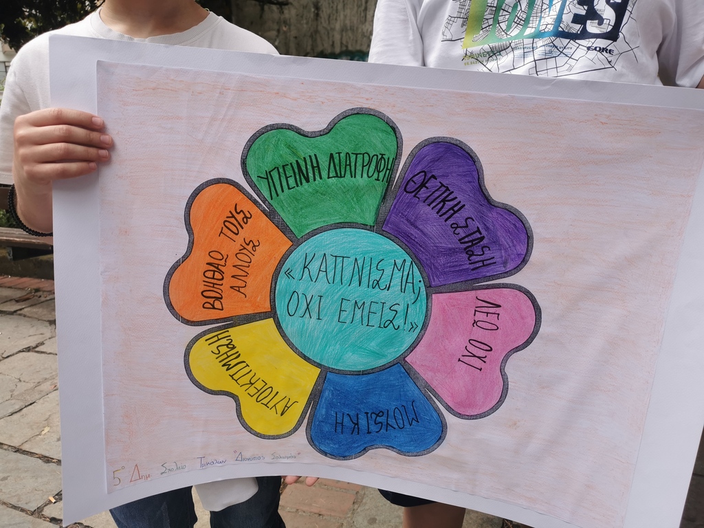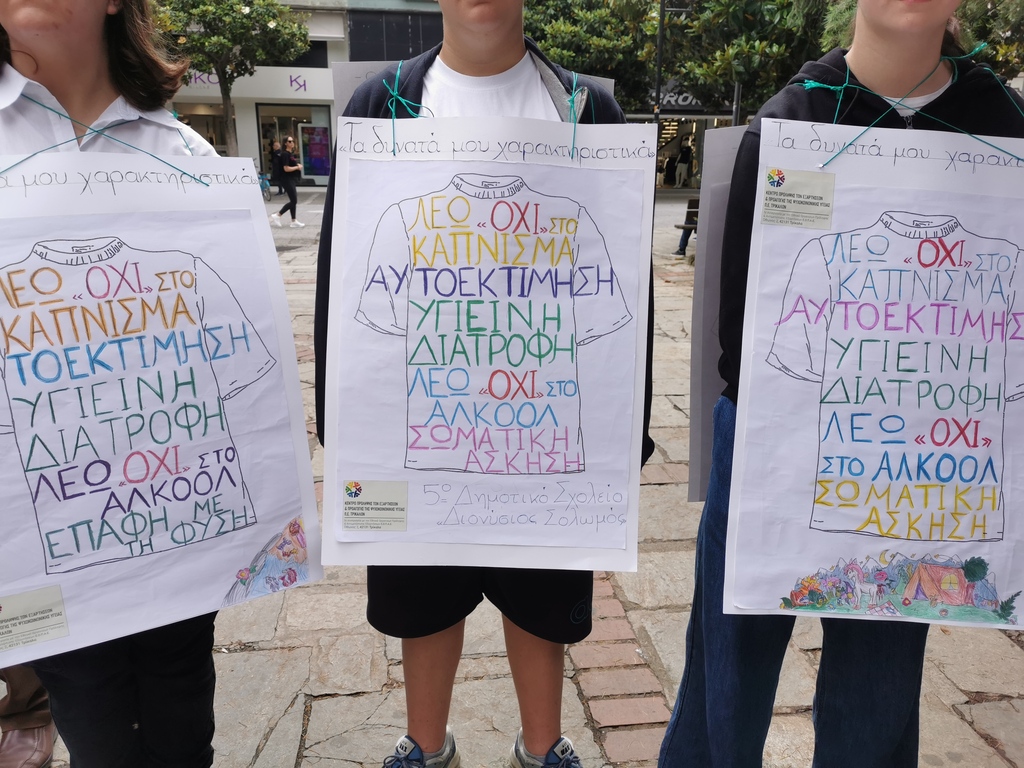 Συνένωση δυνάμεων ενάντια στο κάπνισμα στο Δημαρχείο Τρικκαίων, από το Κέντρο Πρόληψης Τρικάλων και το 5ο Δημοτικό Σχολείο Τρικάλων. Με αφορμή την Παγκόσμια Ημέρα κατά του Καπνίσματος στις 31 Μαΐου 2025, μαθητές και μαθήτριες της Στ΄ Τάξης του 5ου Δημοτικού Σχολείου Τρικάλων παρουσίασαν έξω από το Δημαρχείο Τρικκαίων – στις 30 Μαίου 2025 – θεατρικό δρώμενο και συνολικότερα τη δράση τους ενάντια στο κάπνισμα, στους αντιδημάρχους Μιχάλη Λάππα και Σοφία Αλεστά. Η δράση του σχολείου υλοποιήθηκε στη βάση προγράμματος πρόληψης του καπνίσματος, που υλοποιεί το Κέντρο Πρόληψης Τρικάλων για μαθητές/τριες Δημοτικών Σχολείων. Στόχος του, το να ενισχύσει την αντίσταση των παιδιών στην πίεση των συνομηλίκων, βοηθώντας στην ανάπτυξη δεξιοτήτων για να αντιμετωπίζουν την προσφορά καπνίσματος. Κάτι που φάνηκε, τόσο από το περιεχόμενο του θεατρικού δρώμενου, όσο και από τα πλακάτ που μοι μαθητές/τριες είχαν δημιουργήσει, με αισιόδοξα και προτρεπτικά μηνύματα ενάντια στο κάπνισμα.