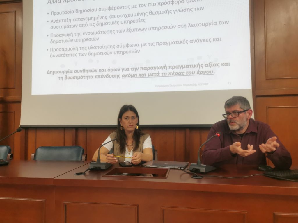 Ζητήματα για την υλοποίηση του μεγάλου έργου ψηφιακής μετάβασης restart mAI City συζητήθηκαν την Τετάρτη 30 Απριλίου 2025 στο Δημαρχείο Τρικκαίων. Στελέχη του Δήμου Τρικκαίων ενημερώθηκαν και συζήτησαν με την αντιδήμαρχο Σοφία Αλεστά και τον υπεύθυνο του προγράμματος, ειδικό συνεργάτη του Δήμου Δρ. Κώστα Αβδελίδη, για την πορεία του μεγάλου έργου για τον Στρατηγικό Σχεδιασμό του Δήμου, Συγκεκριμένα, τέθηκαν και αναλύθηκαν ζητήματα στρατηγικού σχεδιασμού και λεπτομερειών υλοποίησης πτυχών και στόχων των επί μέρους έργων. Στόχος, η ενοποίηση διαδικασιών και, μέσω αυτής, η βελτίωση της ταχύτητας υλοποίησης παραδοτέων έργων, σε συνδυασμό με απαιτούμενες ενέργειες για την παραλαβή επί μέρους υποέργων. Υπενθυμίζεται ότι το μεγάλο αυτό ψηφιακό έργο των 6,9 εκ. € αποτελεί τη μετάβαση του Δήμου Τρικκαίων στην επόμενη λειτουργική φάση για υπηρεσίες που θα παρέχονται στους πολίτες, με τη συμβολή και τη χρήση της τεχνολογίας, σε πλήθος διαφορετικών διαδικασιών.