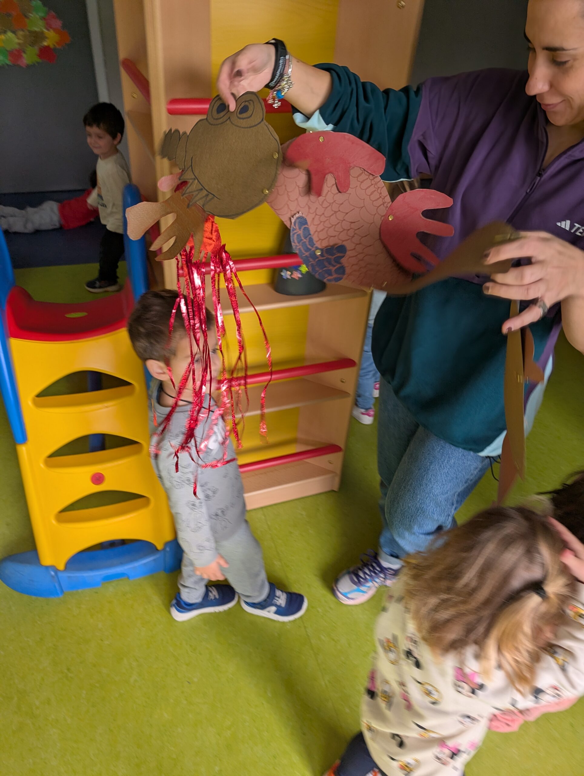 • Αρχικά, πραγματοποιήθηκε ανάγνωση και δραματοποίηση παραμυθιού με θέμα «τα παιδικά δικαιώματα». Στη συνέχεια, μέσα από το θεατρικό παιχνίδι, τα παιδιά γνώρισαν με βιωματικό τρόπο τη σημασία των δικαιωμάτων τους, ενώ στο τέλος κατασκεύασαν όλοι μαζί τον «δράκο που ήθελε να φάει τα δικαιώματα», μεταμορφώνοντάς τον σε φίλο και φύλακα των παιδιών. Γνώρισαν τα Δικαιώματα του Παιδιού μέσα από το παραμύθι «Ο Δικαιωματούλης και το Μαγικό Φίλτρο της Αγάπης». Μέσα από βιωματικές δράσεις, συζήτηση και παιχνίδι, κατανόησαν την αξία της αγάπης, της προστασίας και του σεβασμού. Ήταν μια ημέρα γεμάτη ευαισθητοποίηση, φαντασία και ενδυνάμωση των μικρών μας φίλων. (Θεατρολόγος: Μαρία Μπλούτσου)