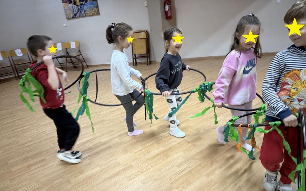 • Επιπλέον, μια ομάδα παιδιών μέσα από το παιχνίδι, την κίνηση και την άθληση είχε την ευκαιρία να αναπτύξει ικανότητες, και να εξασκήσει την φαντασία του, καθώς η κίνηση συμβάλλει καταλυτικά στη διαμόρφωση της προσωπικότητας των παιδιών, σε κοινωνικό επίπεδο, αλλά και στη βελτίωση της υγείας και της ευημερίας τους. Παράλληλα, τα παιδιά είχαν επίσης την ευκαιρία να βιώσουν τις κύριες αρχές των δικαιωμάτων, όπως: ο σεβασμός, η αξιοπρέπεια, η δικαιοσύνη και η συνεργασία. (Γυμνάστρια: Ντίνα Οικονομίδου).