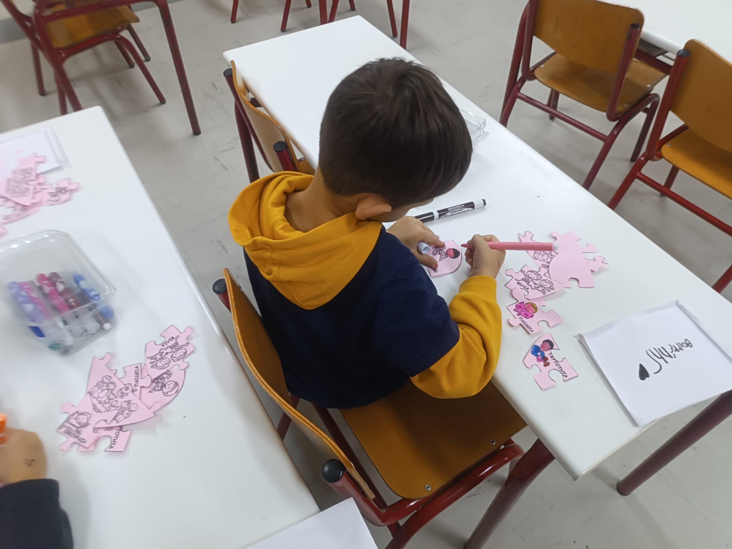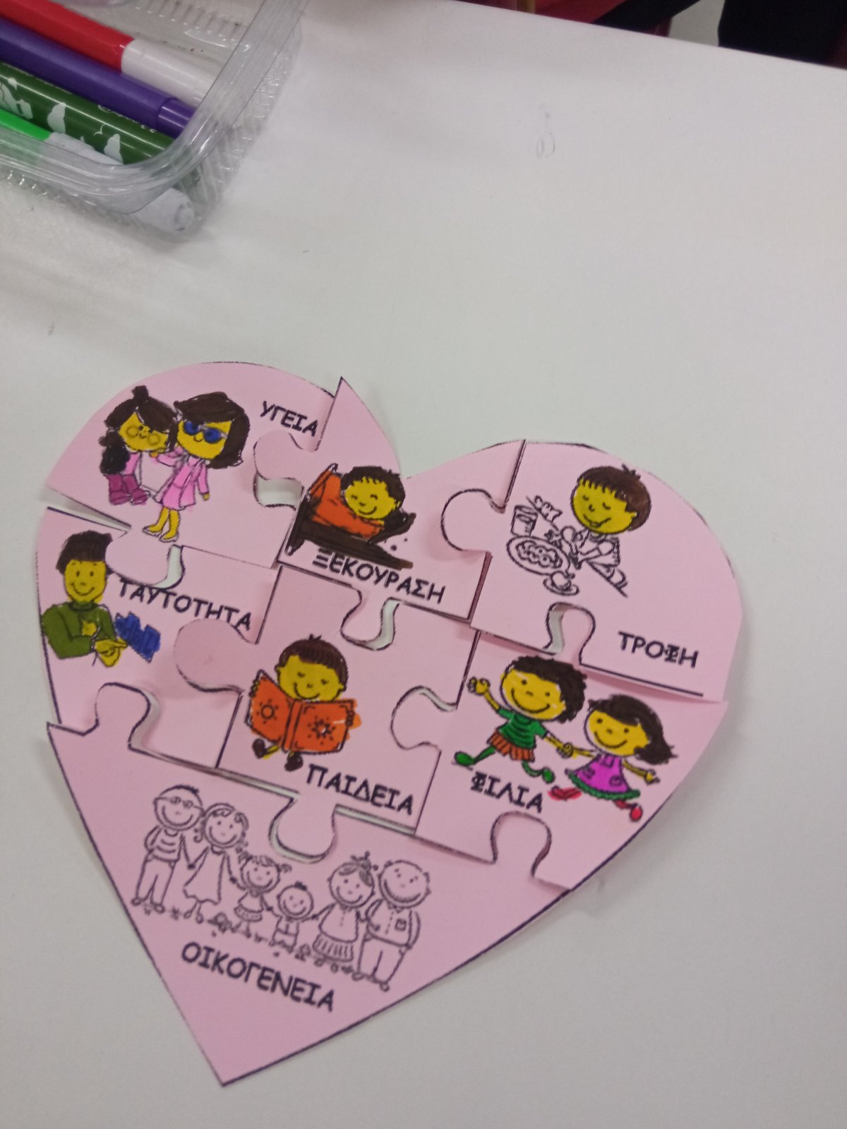 • Πραγματοποιήθηκε μια δραστηριότητα με σκοπό τη γνωριμία των παιδιών με τα δικαιώματα τους, μέσα από παιχνίδι, παραμύθι και ζωγραφική. Ακολούθησε κατασκευή ενός παζλ, που απεικόνιζε τα δικαιώματα των παιδιών, το οποίο και συνθέσανε. Μέσα από τη συμμετοχή τους στη δραστηριότητα τα παιδιά έμαθαν για τη Διεθνή σύμβαση για τα Δικαιώματα του παιδιού, καθώς και τις κατηγορίες δικαιωμάτων που υπάρχουν. (Νηπιαγωγός: Ζωή Μπράκη)