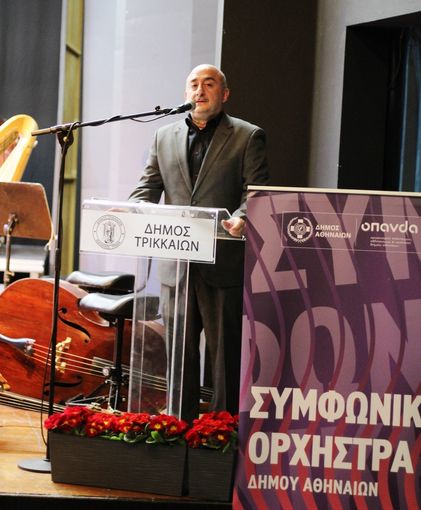 Ο Δήμαρχος Τρικκαίων και πρόεδρος της ΠΕΔ Θεσσαλίας, Νίκος Σακκάς, καλωσορίζοντας το κοινό, στον σύντομο χαιρετισμό του, αναφέρθηκε “στη μεγάλη τιμή και χαρά για τον Δήμο Τρικκαίων και όλους τους τρικαλινούς”, η παρουσία του Δημήτρη Καβράκου ξανά στα Τρίκαλα. Σημείωσε, δε, ότι, ξεκινώντας από τα Τρίκαλα, μας έκανε υπερήφανους και γνωστούς σε όλον τον κόσμο”. Ευχαρίστησε, τέλος, ο κ. Σακκάς, όλους τους ερμηνευτές και τα μέλη της Συμφωνικής Ορχήστρας του ΟΠΑΝΔΑ του Δήμου Αθηναίων για τη συμμετοχή τους στη μουσική αυτή βραδιά.