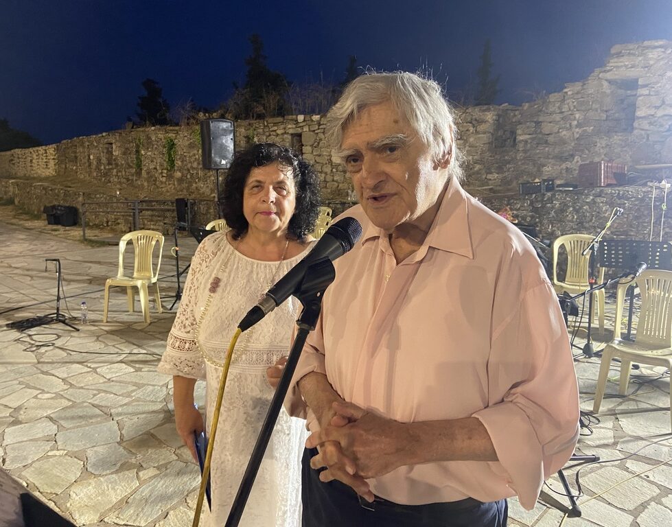 Ο μελοποιητής ποιητών και συνθέτης μεγάλων ποιοτικών επιτυχιών (ενδεικτικά: «Δελφινοκόριτσο», «Θαλασσινό τριφύλλι», «Μικρό παιδί», «Κι εσύ δε μου μιλάς», «Γειτονάκι μου», «Κορίτσι με τα παντελόνια» κ.α.) βρέθηκε στα Τρίκαλα και στον χαιρετισμό του ανέφερε τη σημασία του να διοργανωθεί η εκδήλωση, ενώ μίλησε ειδικά για τα παιδιά «Ένας δημιουργός παράγει ένα έργο και αυτά τα παιδιά, αυτοί οι εραστές της τέχνης είναι που θα μεταλαμπαδεύσουν οτιδήποτε πολιτιστικό και την παράδοση. Είναι θεματοφύλακες σε μια εποχή που ο πολιτισμός μας κινδυνεύει και βάλλεται . Διότι αν ένας λαός χάσει την πολιτιστική του ταυτότητα χάθηκε». Η αναφορά έγινε για τα μέλη του Συνόλου Σύγχρονης Ελληνικής Μουσικής του Μουσικού Σχολείου Σερρών, που υλοποίησε την εκδήλωση.
