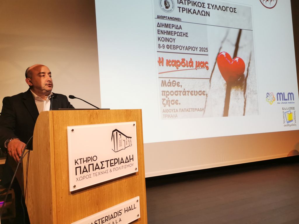 Με έμφαση στην υγεία της καρδιάς για την υγεία καθενός/μιας ξεκίνησαν το Σάββατο 8 Φεβρουαρίου 2025 στα Τρίκαλα οι εργασίες μιας ενδιαφέρουσας και χρήσιμης επιστημονικής εκδήλωσης. Πρόκειται για τη διημερίδα με τίτλο «Η Καρδιά μας: Μάθε, Προστάτευσε, Ζήσε», που τη συνδιοργανώνουν ο Ιατρικός Σύλλογος Τρικάλων με το Πρόγραμμα Μεταπτυχιακών Σπουδών Ιατρική του Τρόπου Ζωής- Lifestyle Medicine, το Εργαστήριο Πειραματικής Φυσιολογίας και Θεραπευτικής Άσκησης (ΤΕΦΑΑ Πανεπιστήμιο Θεσσαλίας), την e-trikala AE και την υποστήριξη της Ελληνικής Εταιρίας Επείγουσας Προνοσοκομειακής Φροντίδας (ΕΕΕΟΦ).