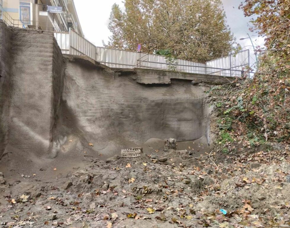 Στη μεν πρώτη ολοκληρώθηκε η ενίσχυση του ακρόβαθρου προς την οδό Οθωνος με εκτοξευμένο σκυρόδεμα, για πρόσθετη στήριξη.