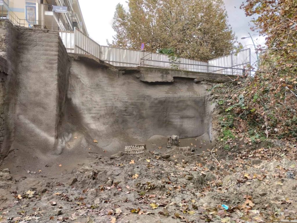 Στη μεν πρώτη ολοκληρώθηκε η ενίσχυση του ακρόβαθρου προς την οδό Οθωνος με εκτοξευμένο σκυρόδεμα, για πρόσθετη στήριξη.