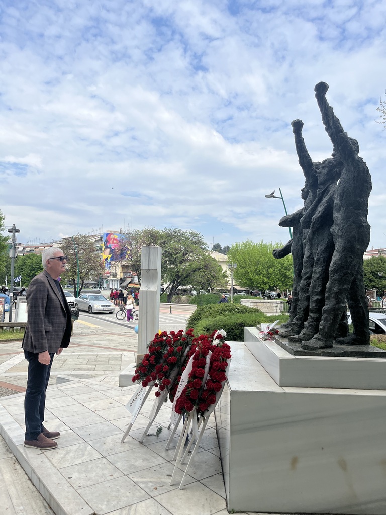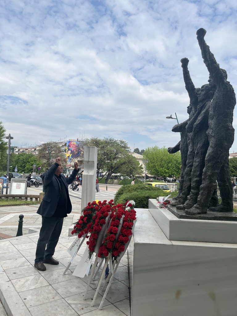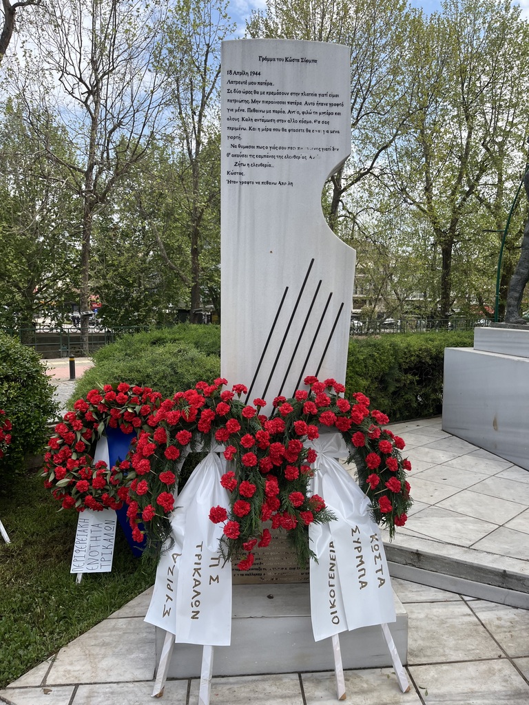 Χαιρετισμό απέστειλε η βουλεύτρια του ΣΥΡΙΖΑ-Προοδευτική Συμμαχία Μαρίνα Κοντοτόλη, ενώ ποίημα απήγγειλε ο κ. Ηλίας Στεργιόπουλος αδελφός του εκτελεσθέντα Κώστα Στεργιόπουλου και συγγραφέας. Ακολούθησε κατάθεση στεφάνων από τον